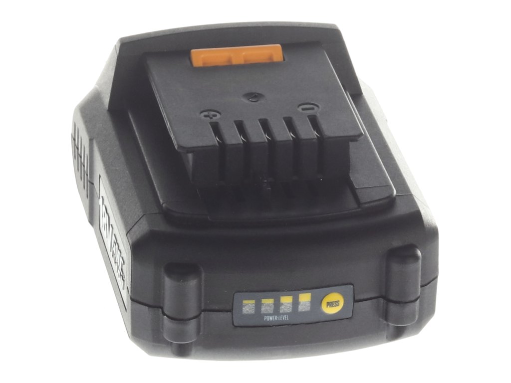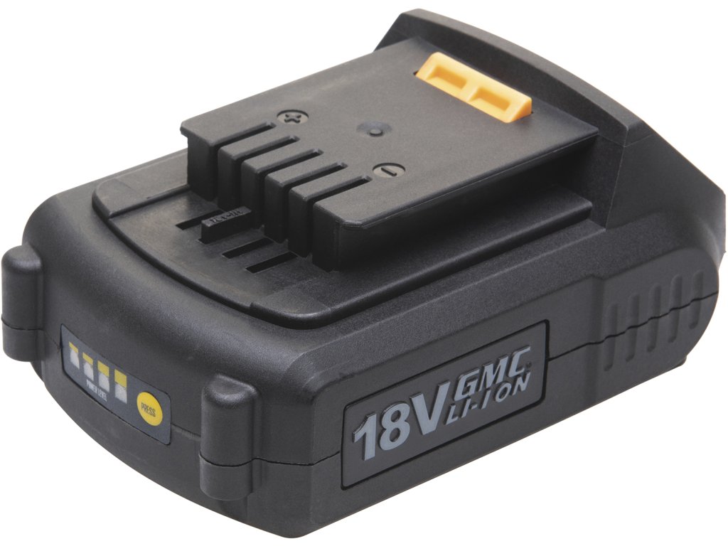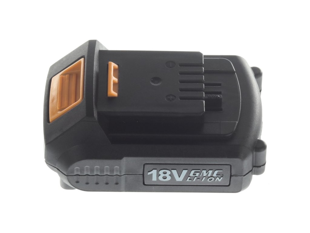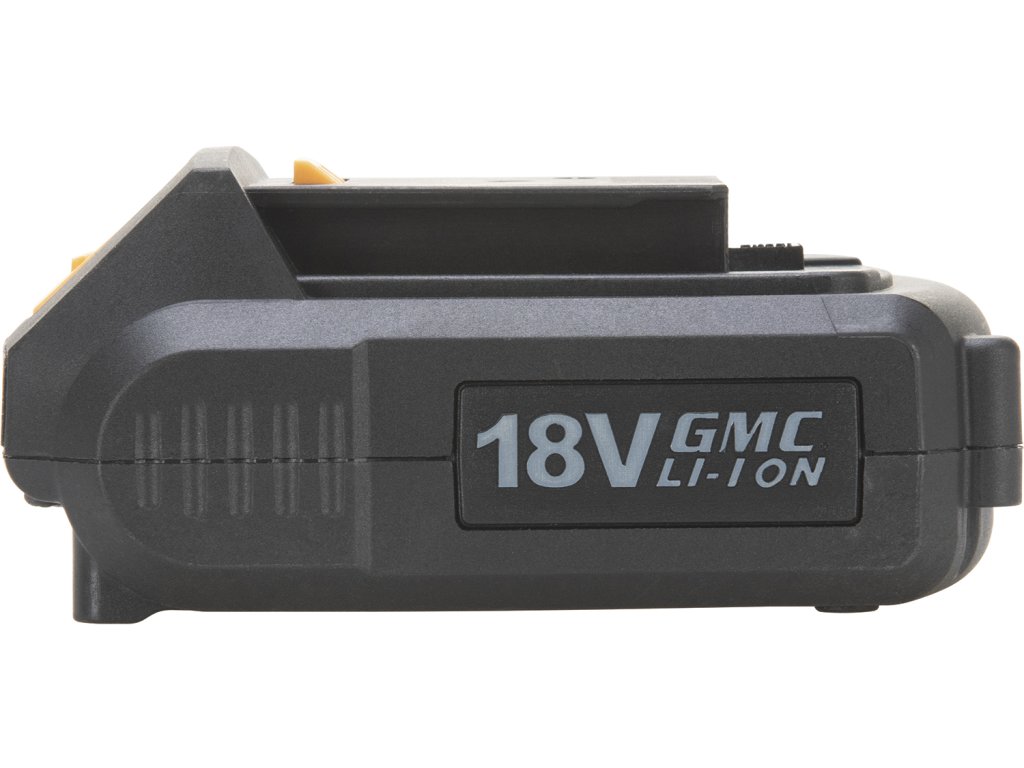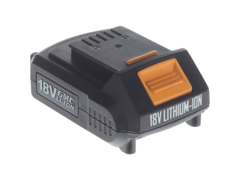 Akumulator GMC 18 V 1,5 Ah kompatybilny z serią narzędzi GMC 18 V. Lekkie ogniwa akumulatora. Wbudowany wskaźnik poziomu naładowania.