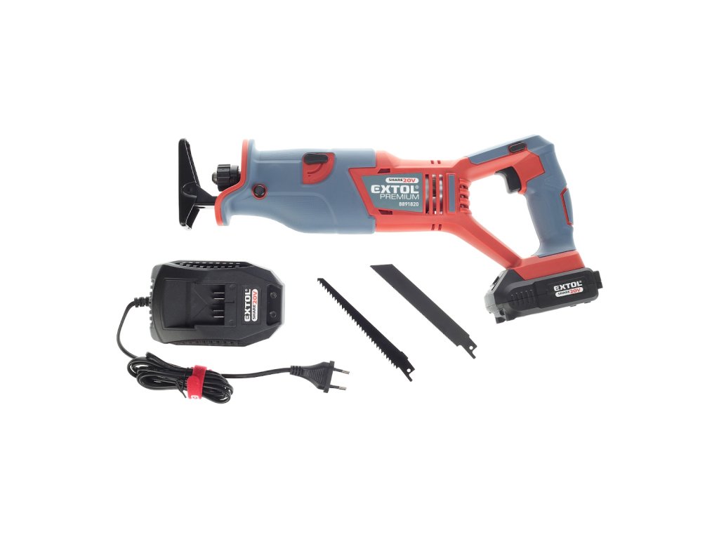 Ogon piły AKU jest przeznaczony do cięcia drewna, plastiku, metali i innych podobnych materiałów podczas pracy w warsztacie, garażu lub ogrodzie. Elastyczny brzeszczot pozwala wykonywać nie tylko cięcia proste i łukowe, ale także cięcia w trudno dostępnych miejscach (w narożnikach, wzdłuż ściany), przycinanie drzew. Główną zaletą tej piły jest napęd akumulatorowy, który pozwala zabrać tę piłę ze sobą tam, gdzie trzeba z nią pracować, niezależnie od tego, czy istnieje dystrybucja mocy. Piła posiada bezpiecznik zabezpieczający przed przypadkowym uruchomieniem i jest wyposażona w regulowaną oscylację wstępną, którą można regulować w zależności od ciętego materiału. Do normalnej pracy wystarcza jedna lub dwie baterie 2000 mAh, które można szybko naładować szybką ładowarką, do bardziej wymagającej lub dłuższej pracy polecamy większe baterie o pojemności 4000 mAh. Akumulator może być stosowany we wszystkich typach narzędzi serii EXTOL SHARE20 V. Dzięki zastosowanej technologii litowo-jonowej można go ładować w dowolnym momencie bez zmniejszania jego pojemności. Akumulator litowo-jonowy traci energię bardzo powoli z powodu samorozładowania i trwa przez długi czas naładowany i gotowy do użycia.