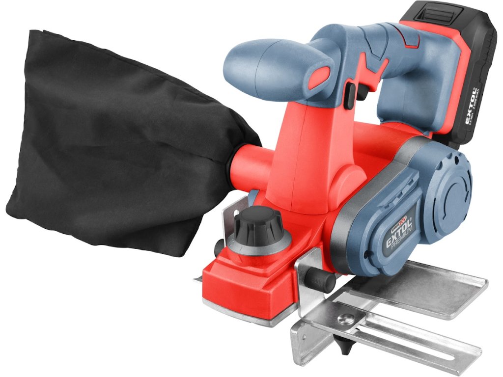 Strugarka Extol Premium AKU łączy szybkość i wydajność strugarki elektrycznej z wygodą narzędzi bezprzewodowych. Rezultatem jest szybkie i dokładne usunięcie materiału bez zasłaniania. Głowica tnąca strugarki ma dwa wysokiej jakości ostrza. Trzpień ochronny w blacie strugarki chroni zarówno ostrze, jak i obrabiany materiał, utrzymując ostrze uniesione i nie stykając się z powierzchnią materiału między cięciami. Worek zbiorczy podłączony do wylotu pyłu pomaga utrzymać obszar roboczy w czystości i bez trocin. Dołączony składany adapter pomaga tworzyć półrowki w płytach, a adapter równoległy utrzymuje strugę w określonej odległości. Do normalnej pracy wystarcza jedna lub dwie baterie 2000 mAh, które można szybko naładować szybką ładowarką, do bardziej wymagającej lub dłuższej pracy polecamy większe baterie o pojemności 4000 mAh. Akumulator może być stosowany we wszystkich typach narzędzi serii EXTOL SHARE20 V. Dzięki zastosowanej technologii litowo-jonowej można go ładować w dowolnym momencie bez zmniejszania jego pojemności. Akumulator litowo-jonowy traci energię bardzo powoli z powodu samorozładowania i trwa przez długi czas naładowany i gotowy do użycia.