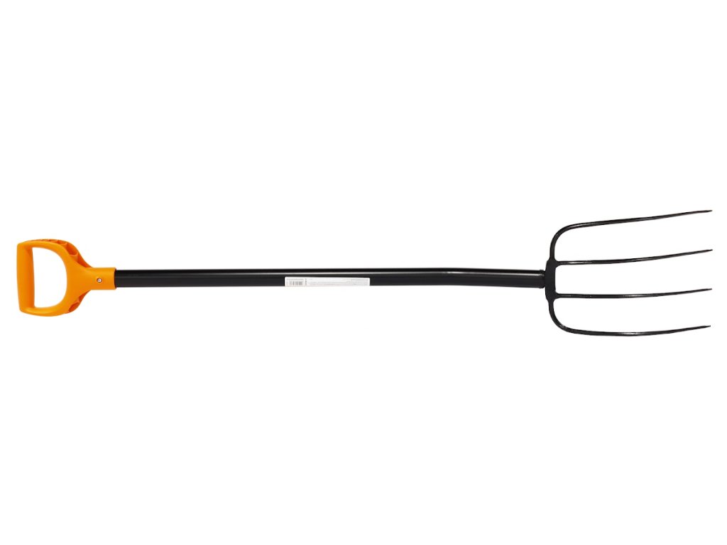 Widły kompostowe SOLID mają 4 długie spiczaste kolce odpowiednie do załadunku kompostu, gałązek, nate itp. Wykonana z wysokiej jakości stali borowej z dużym uchwytem w kształcie litery D uniwersalnym do wielkości dłoni. Szerokość wynosi 22cm, długość 127cm, waga 1800g. Oryginalny Fiskars numer: 133433.