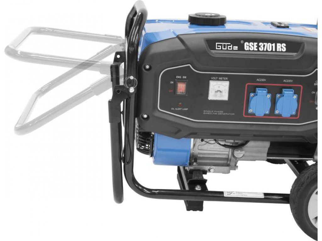 Generator prądu: jednofazowy, synchroniczny; AVR (elektroniczna regulacja napięcia wyjściowego), woltomierz, wyłącznik przed przeciążeniem obwodu wyjściowego.