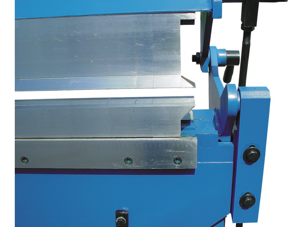Segmentowa giętarka z dzieloną listwą górną i dolną, co znacząco rozszerza możliwości giętych kształtów. Kąt 150°, materiał maks. 1 050 mm/1,5 mm.