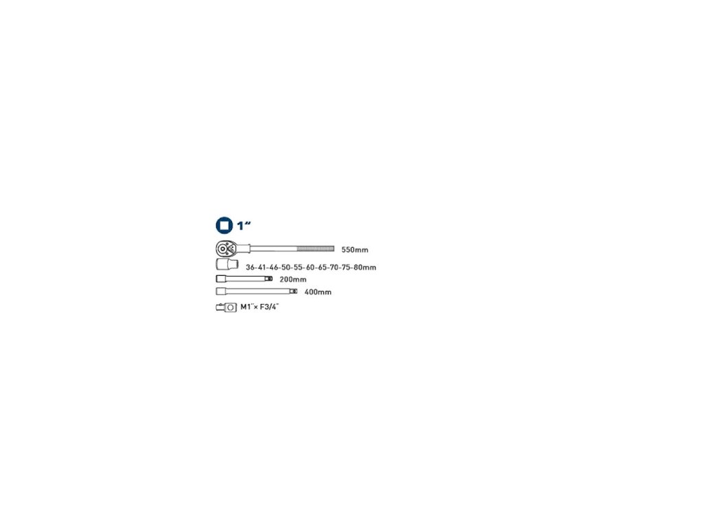 - Głowica gniazda: 1": 36 - 41 - 46 - 50 - 55 - 60 - 65 - 70 - 75 - 80 mm