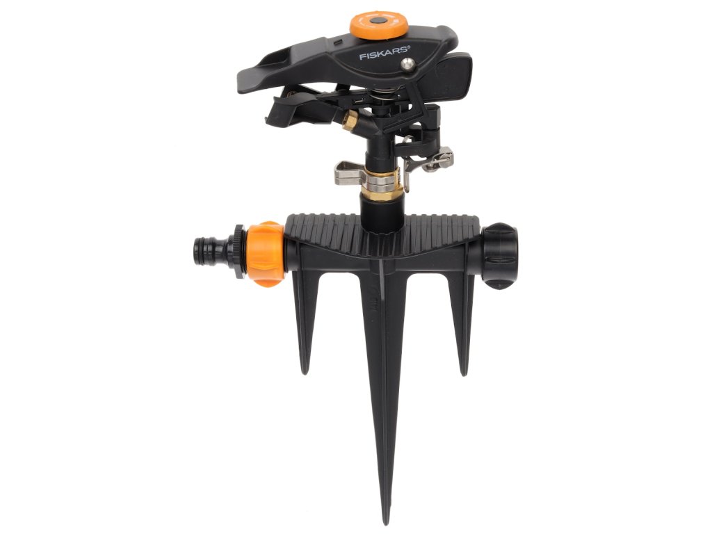Wytrzymały opryskiwacz metalowy zawiera elementy sterujące, które łatwo regulują odległość nawadniania, rodzaj natryskiwania i kontrolę rotacji w celu dokładnego nawadniania dowolnego obszaru ogrodu. Rodzaj sprayu można regulować od silnego prądu do drobnej mgły. Regulacja obszaru nawadniania do średnicy 26 m (> 500 m2). Metalowa podstawa cierniowa. Uniwersalna łączność jest kompatybilna z innymi markami. Wysokość: 36 cm, długość: 19,5 cm, szerokość: 6,6 cm. Waga produktu: 0,47 kg.