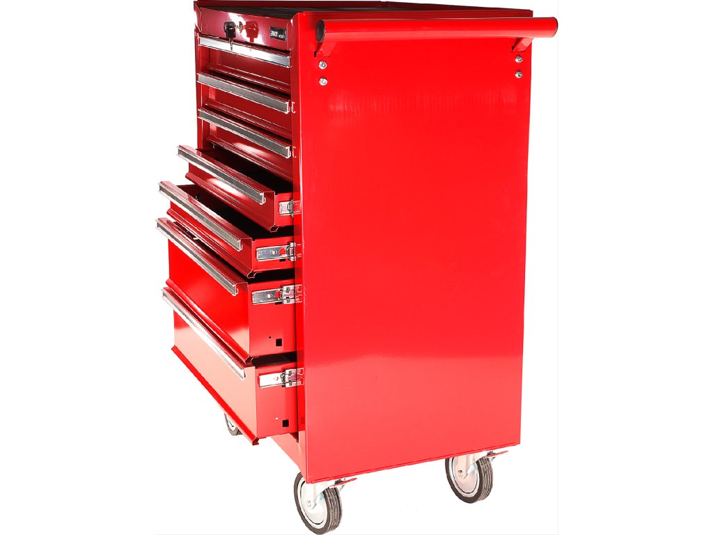 Konstrukcja stalowa, pełne ogumienie, 4 koła prowadzące (z czego 2 z możliwością pełnego hamowania), duża powierzchnia robocza, rączka, 2 wysokie i 5 niskich stalowych szuflad. Wymiary szuflad: 570 × 406 × 74,5 mm. Wysokość dużych szuflad 153,5 mm. Wymiary wózka: 680 × 458 × 856 mm.