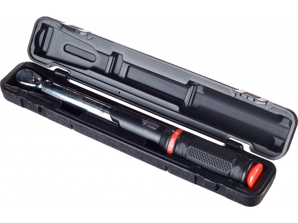 Klucz dynamometryczny o zakresie 5 – 60 Nm jest niezastąpionym narzędzie do dokładnego dokręcania połączeń z przepisaną wartością momentu dokręcenia w lewo i w prawo. Nastawienia momentu dokręcania dokonuje się w prosty sposób obracając rękojeścią według podziałki w okienku na rękojeści. Dźwigienka na głowicy klucza umożliwia nastawienie kierunku obrotu. Osiągnięcie potrzebnego momentu jest sygnalizowane przeskoczeniem wewnętrznego uzębienia w szyjce głowicy. Do aretacji nastawienia służy przycisk na końcu rękojeści. Długość całkowita 390 mm.