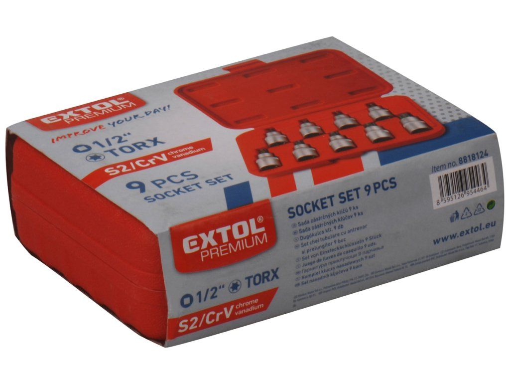 Zestaw 1/2" bitów nasadowych ze stali CrV o długości 55 mm T20, 25, 27, 30, 40, 45, 50, 55, 60.