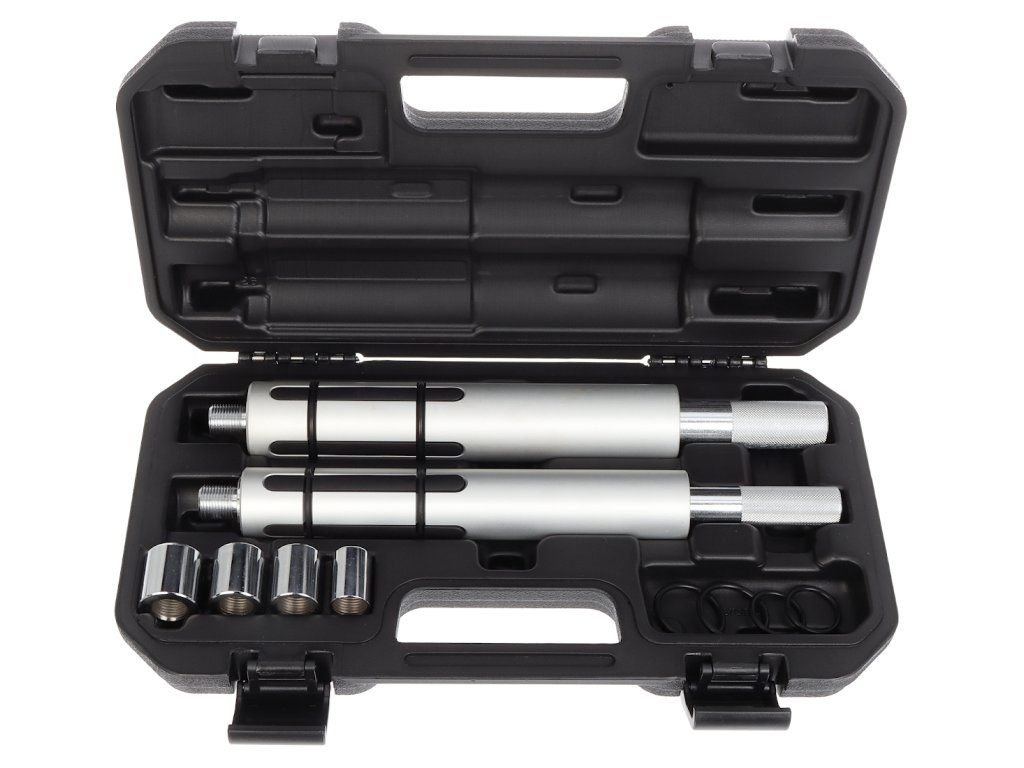 Uniwersalny komplet do centrowania pojedynczych i podwójnych sprzęgieł samochodów ciężarowych i ciągników. Zawiera dwa trzpienie na średnicę wewnętrzną piasty sprzęgła 36 – 45 a 42 – 52 mm, oraz tuleje centrujące o średnicy 20, 25, 27 i 30 mm. W walizce plastykowej, wszystko przejrzyście uporządkowane.