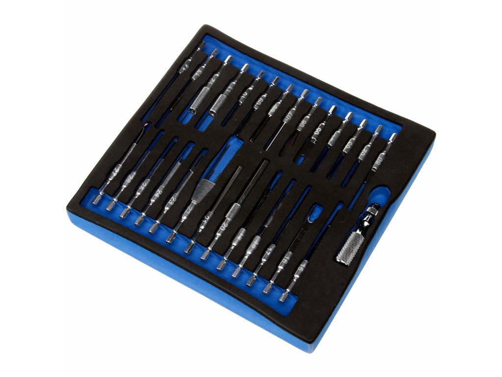 Zawiera uniwersalną rękojeść z 27 szt. różnych narzędzi do demontażu i montażu elementów połączeniowych, zacisków i konektorów w instalacji elektrycznej samochodów większości europejskich i światowych producentów samochodów osobowych. Ułożone przejrzyście w kasecie z tworzywa.