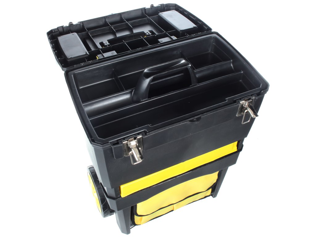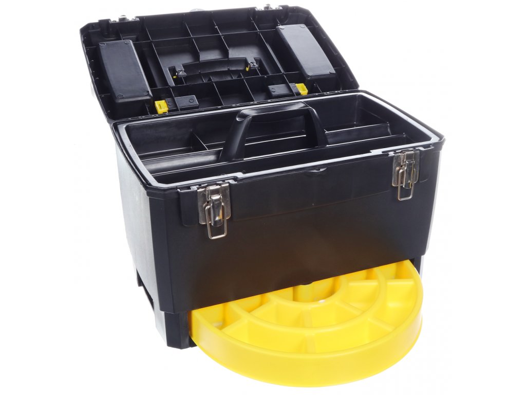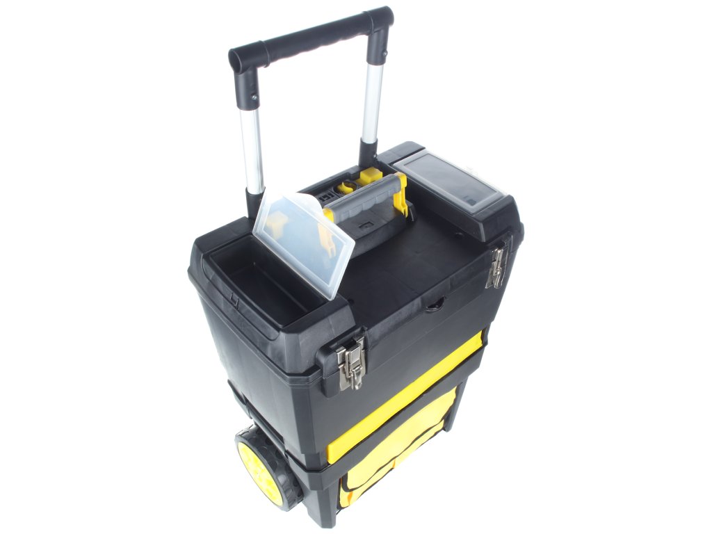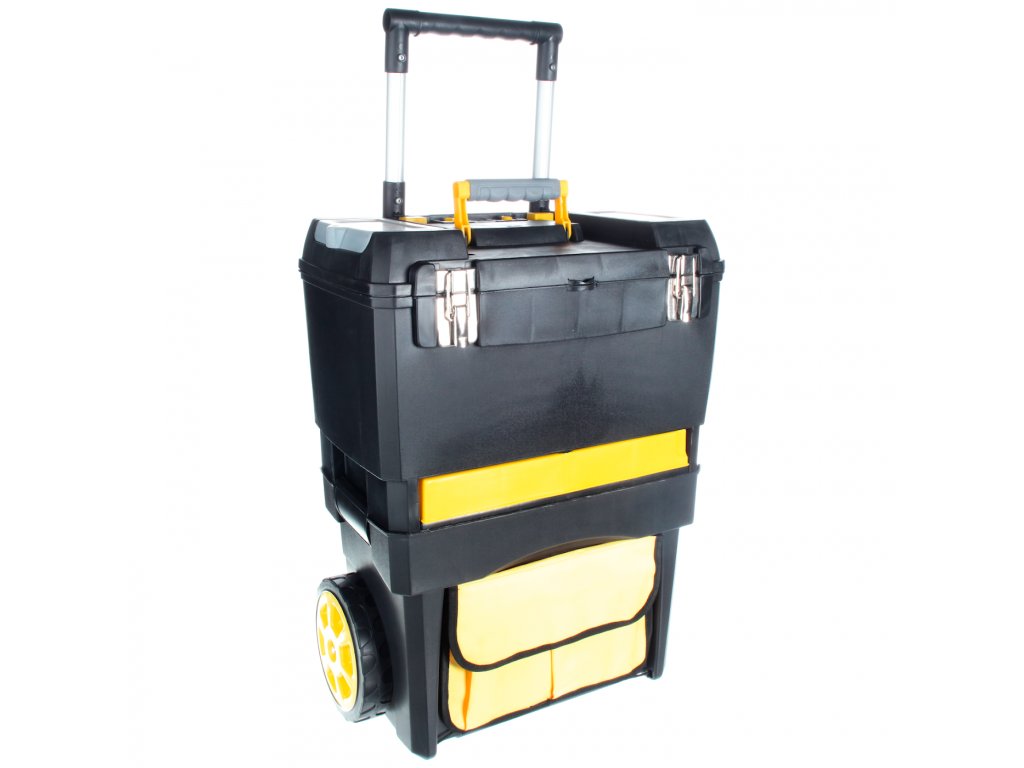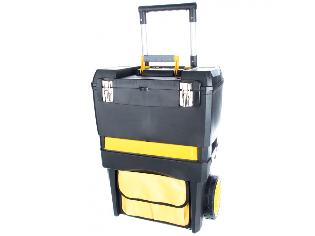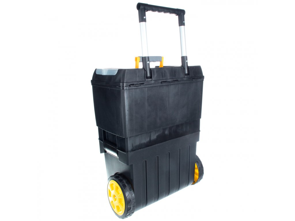 Pojemnik składa się z dwóch oddzielnych, zdejmowanych części. Górną część stanowi skrzynka na narzędzia z tworzywa sztucznego, ze składanym uchwytem. Pod nią znajduje się okrągły, obrotowy schowek, który zapewnia dogodny dostęp do przechowywanych elementów łącznych. W dolnej części umieszczono płócienną torbę na narzędzia. W celu ułatwienia przemieszczania pojemnik wyposażono w kółka o średnicy 148 mm i wysuwaną rączkę. Nośność całkowita wynosi 20 kg. Wymiary całkowite: 470 × 270 × 630 mm.