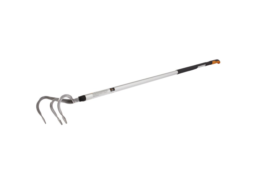 Kultywator z trzema końcówkami ze stali nierdzewnej nadaje się do spulchniania gleby. Ergonomiczny uchwyt wykonany jest z hartowanego aluminium z wygodną powierzchnią SoftGrip. Uchwyt jest dłuższy, zapewniając idealną równowagę instrumentu. Posiada otwór w uchwycie ułatwiający zawieszanie i przechowywanie. wysokość: 116 mm, długość: 1720 mm, szerokość: 148 mm, waga: 880 g.