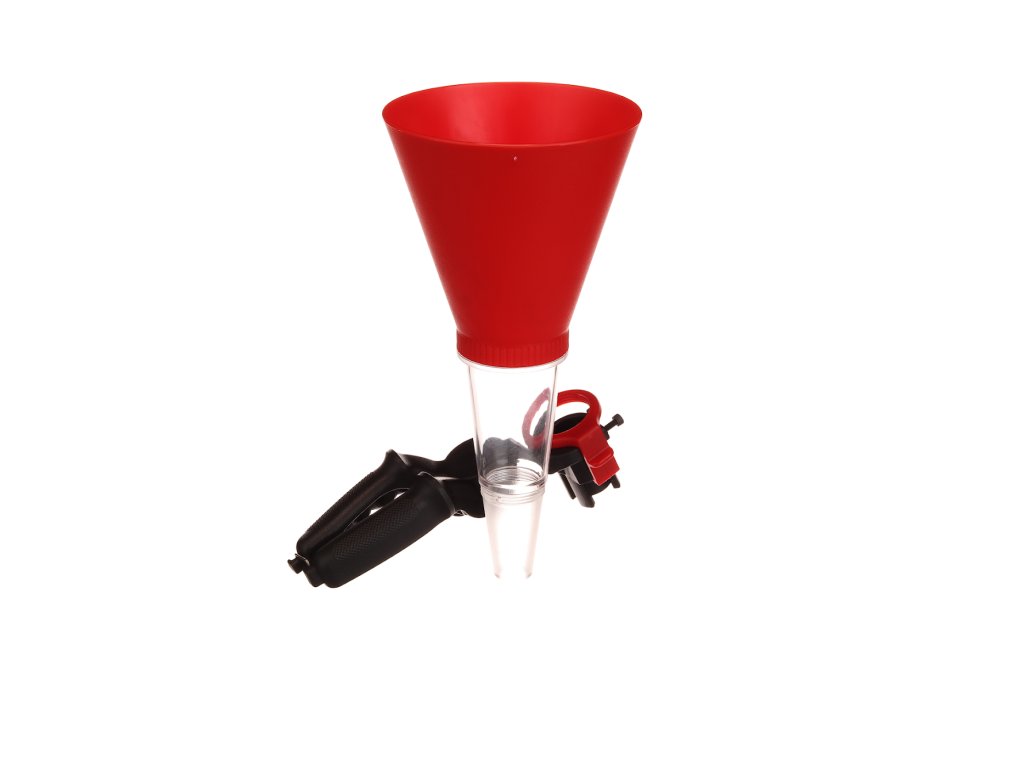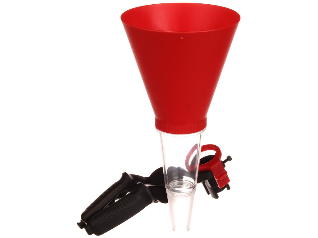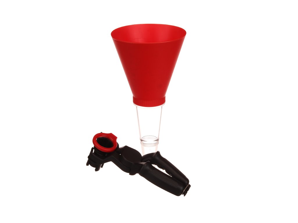 Lejek do łatwego nalewania oleju. Posiada automatycznie regulowany zacisk 28 – 74 mm, dolna komora jest przezroczysta dla lepszej kontroli przepływu oleju. Podczas uzupełniania oleju nie trzeba trzymać lejka w ręce.