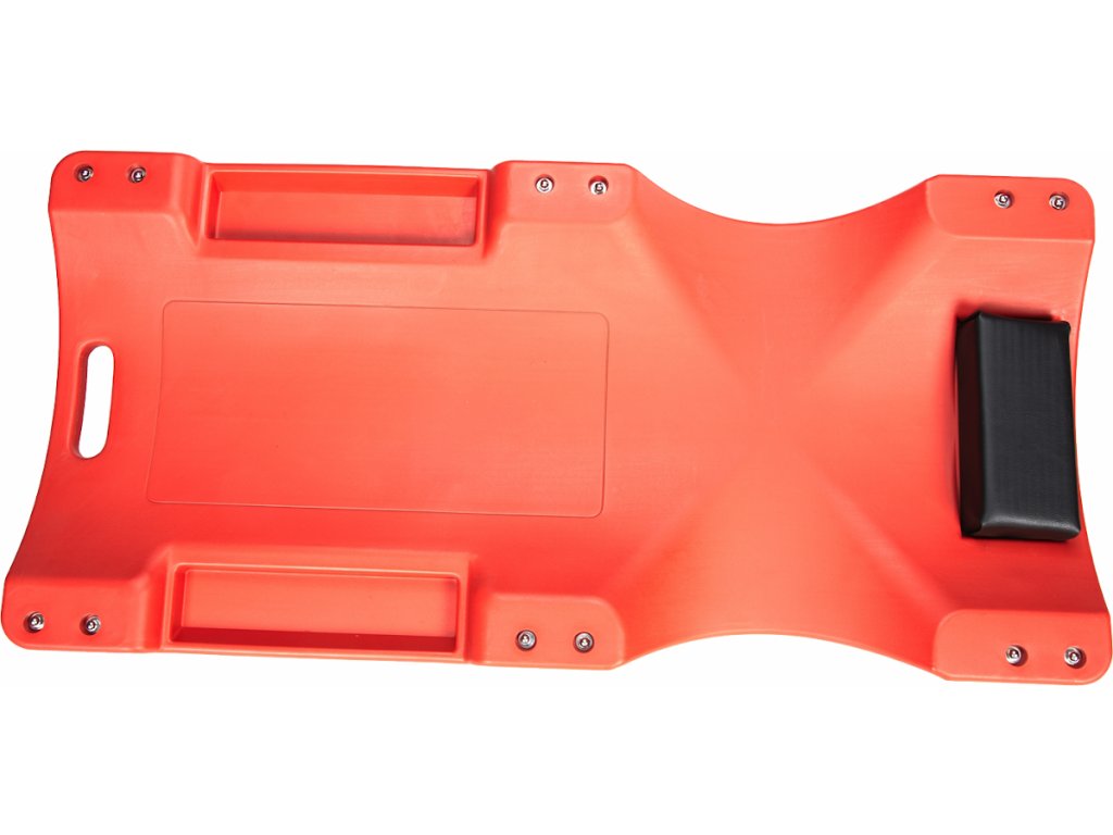 Leżanka monterska o budowie ergonomicznej z pojemnikami na narzędzia, zagłówkiem i sześcioma kółkami jezdnymi. Wykonana z plastiku łatwego do utrzymania, odpornego na działanie smarów i paliw.