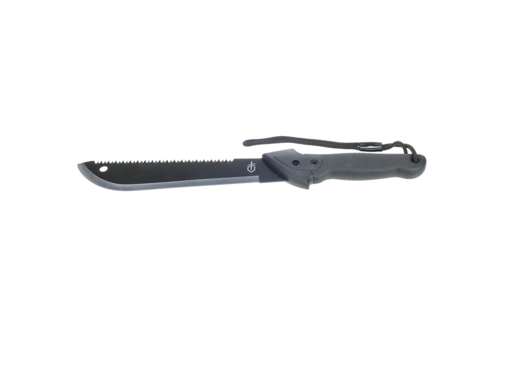 Maczeta z uchwytem Gator Grip posiada zintegrowaną piłę. Ostrze ma gładką krawędź. W zestawie futerał ułatwiający przenoszenie. Maczeta nadaje się do cięcia gałęzi i małych drzew. Długość całkowita: 48 cm, długość ostrza: 29 cm, waga: 405 g.