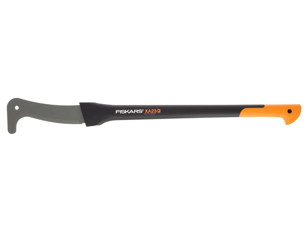 Służy do usuwania większych gałęzi (na sadzonki i krzewy), a także do przygotowywania drewna do ognia. Wykonana jest z mocnego, tarvingowego i lekkiego materiału wzmocnionego włóknami szklanymi. Posiada wygodnie chwytalny uchwyt, który pochłania wstrząsy. Jest idealnie wyważony. Ostrze i uchwyt są mocno połączone. Oryginalny numer Fiskars: 126005. Oznaczenie: XA23