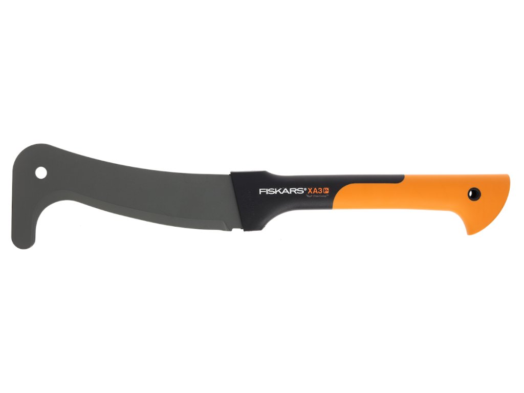 Służy do usuwania mniejszych gałęzi (na sadzonki i krzewy), a także do obierania kory z kłód. Wykonana jest z mocnego, trwałego i lekkiego materiału wzmocnionego włóknami szklanymi. Posiada wygodnie chwytalny uchwyt, który pochłania wstrząsy. Jest idealnie wyważony. Ostrze i uchwyt są mocno połączone. Szerokość: 120 mm, długość: 505 mm, waga: 450 g. Oryginalny Numer Fiskars: 126004. Oznaczenie: XA3
