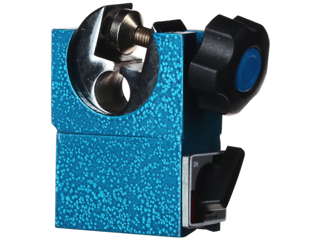 Mały praktyczny stojak na mikrometry do 300 mm. Możliwość montażu przy pomocy magnesu do powierzchni metalowych, płaskich i cylindrycznych. Odchylanie pionowe z możliwością mocowania. Wyłączanie magnesu przełącznikiem obrotowym. Wymiary podstawy 58 x 30 mm. Całkowita długość 88 mm.