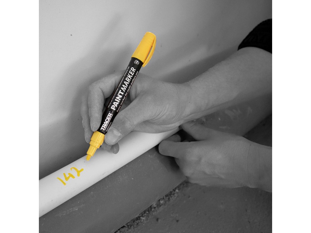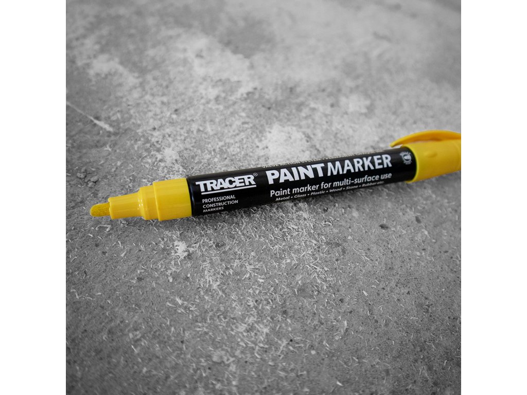 Szeroki marker permanentny o wysokim kontraście w kolorze żółtym. Nie zawiera toluenu i ksylenów. Solidna metalowa konstrukcja z unikalnym zaworem atramentu, który zapewnia, że marker nie wyschnie.