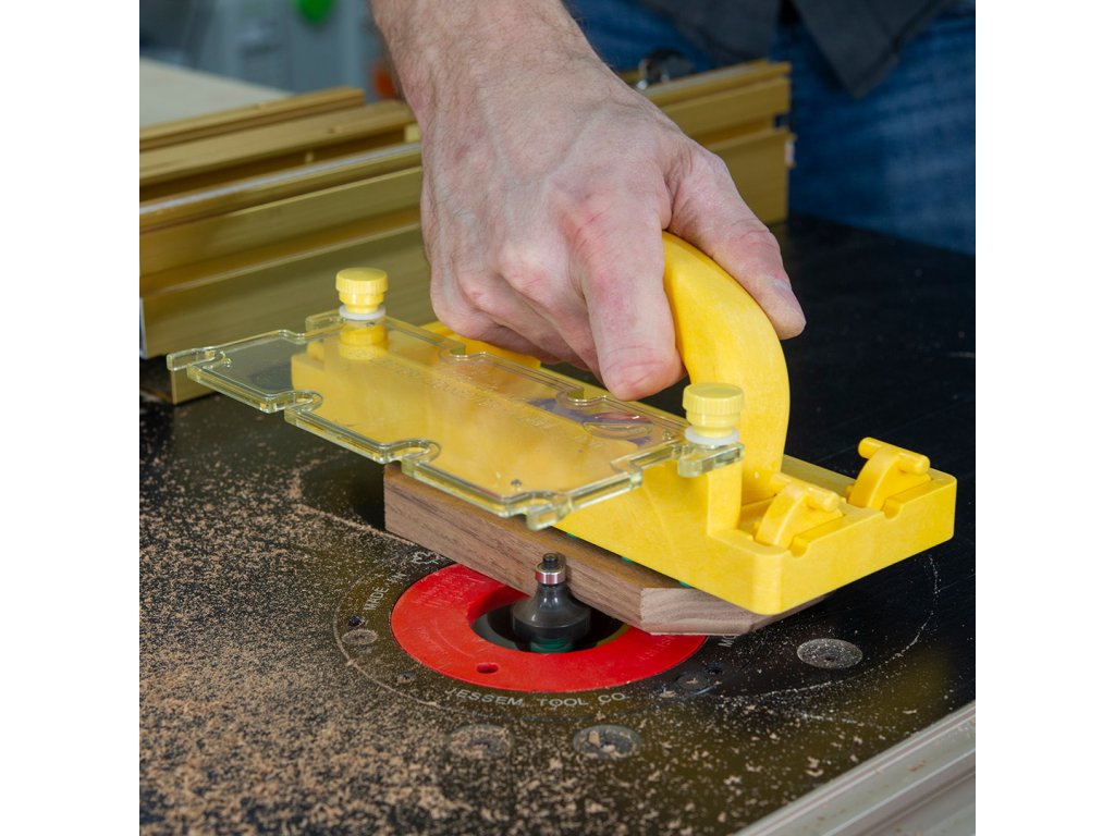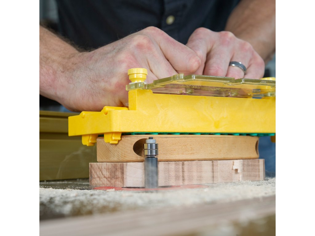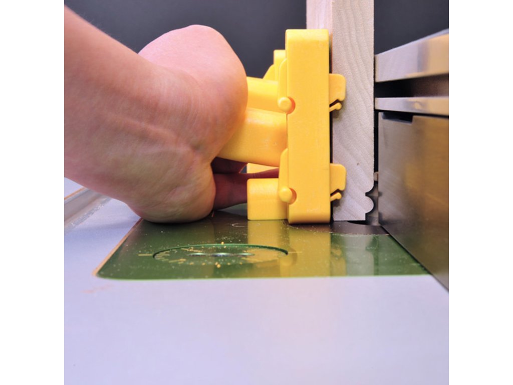 Uzyskaj pełną kontrolę nad obrabianym przedmiotem bez narażania rąk. Inteligentne haki blokują się w pozycji schowanej i utrzymują je poza zasięgiem frezu. Deflektor / łącznik chroni przed zanieczyszczeniami i drzazgami.