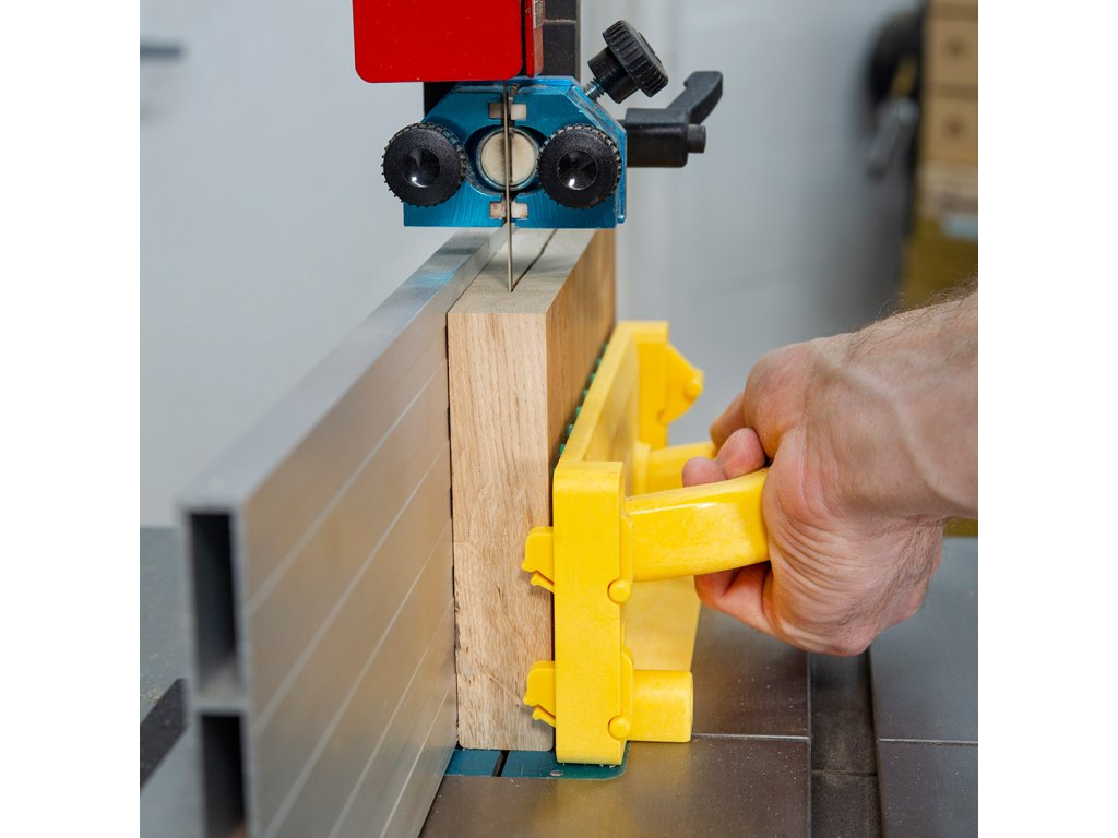 Inteligentne haczyki automatycznie wsuwają się w środek prowadnicy, a następnie opuszczają, chwytając tylną część przedmiotu obrabianego. Można je również zablokować w pozycji schowanej, gdy nie są potrzebne. Są tam, kiedy ich potrzebujesz i schowane, kiedy ich nie potrzebujesz.