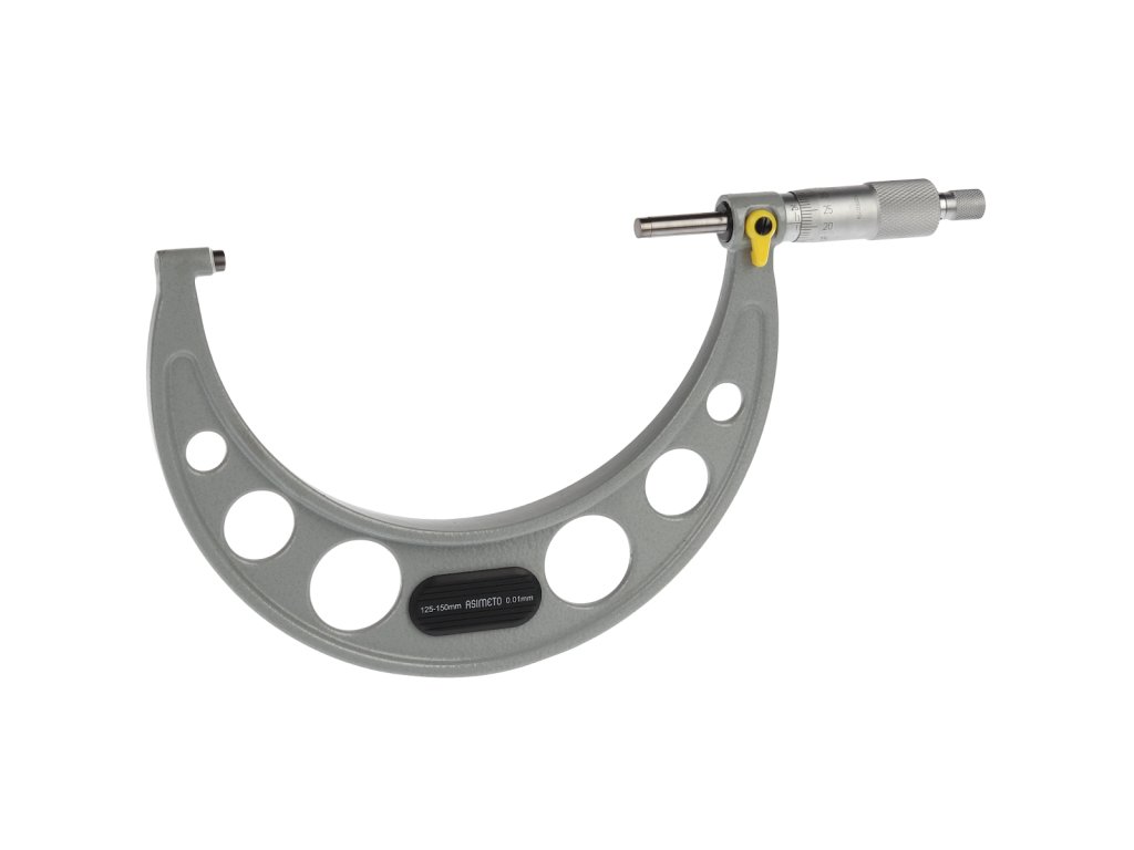 Analogowy mikrometr z grzechotką, płaszczyznami pomiarowymi ze stopu twardego o płaskości 0,6 µm i lakierowaną stalową ramą. Wyposażenie podstawowe: karta gwarancyjna, instrukcja obsługi, certyfikat kalibracji, plastikowa obudowa.