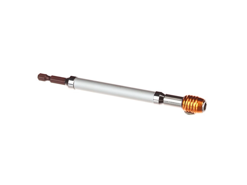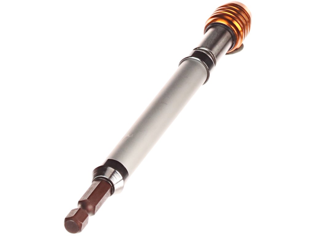 Doskonały pomocnik do wkręcania w trudno dostępnych miejscach. Szybkie mocowanie. Długość 150 mm, korpus Ø10x80 mm, zacisk Ø15x17 mm..