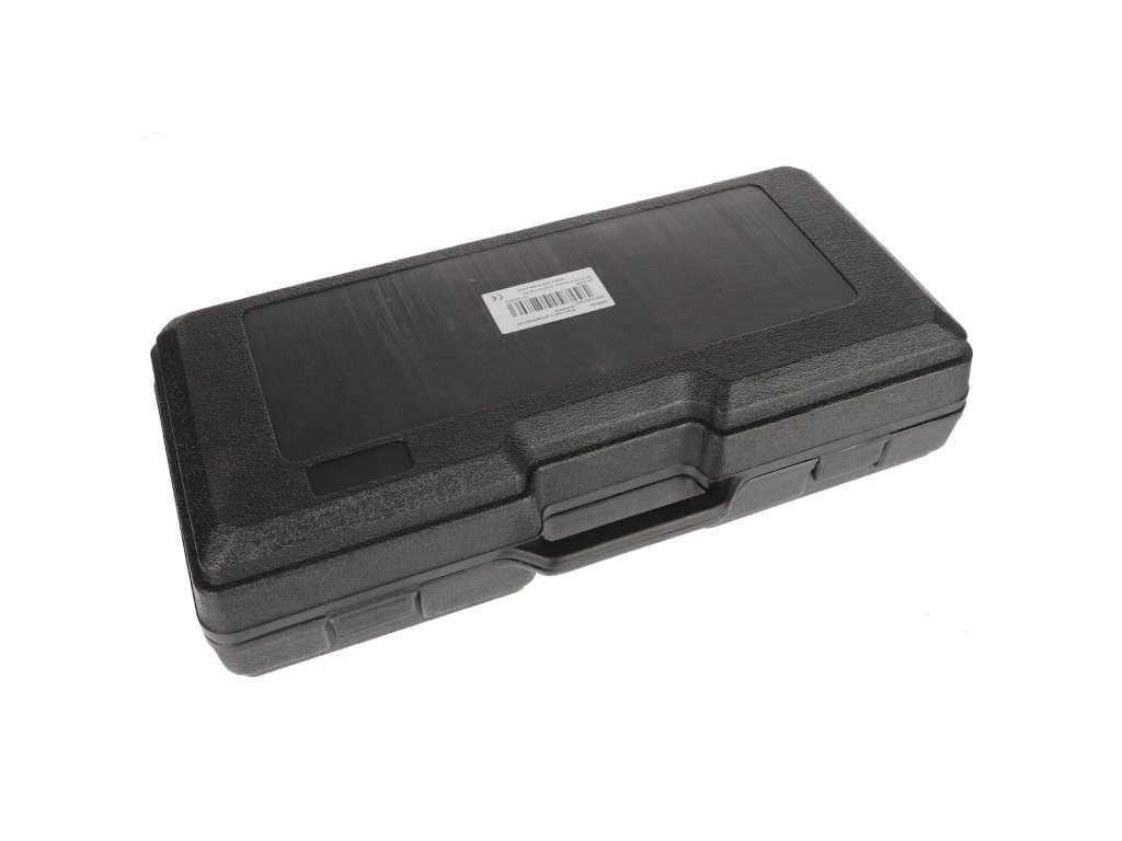 Zestaw narzędzi do oddzielania klejone szyby samochodowych i uszczelnień przy ich demontażu z pojazdu. Narzędzie pneumatyczne z obrotami wolnymi 20 000/min., amplituda 3°, ciśn. rob. 6,2 bar, średnie zużycie powietrza 113 l/min, złącze 1/4", długość 192 mm. Zestaw zawiera 5 szt. różnych rodzajów narzędzi roboczych, 2 szt. przyssawek oraz pas ze sprzączką. Zapakowane w plastikową walizkę.