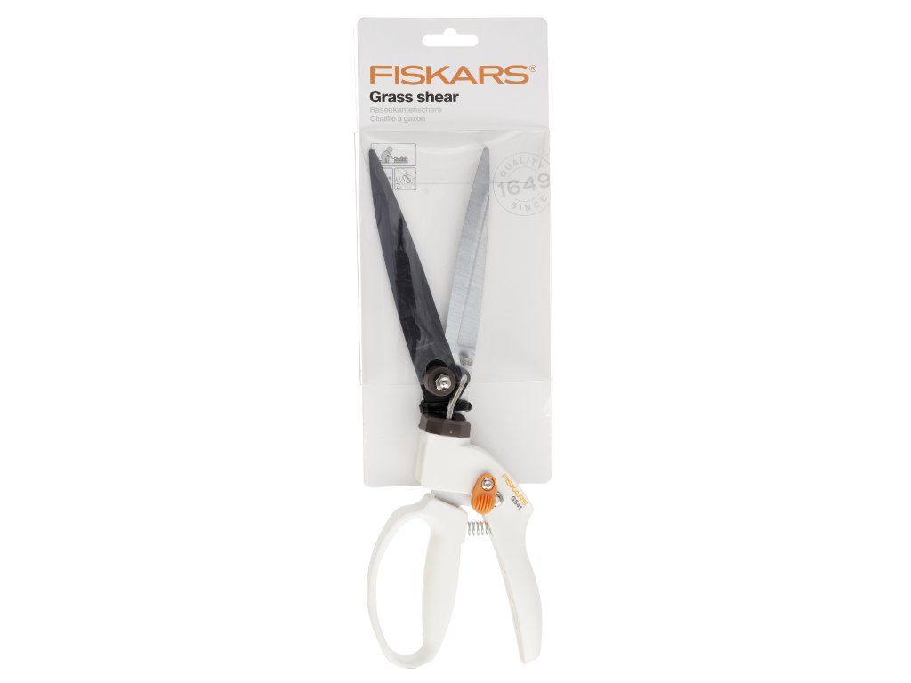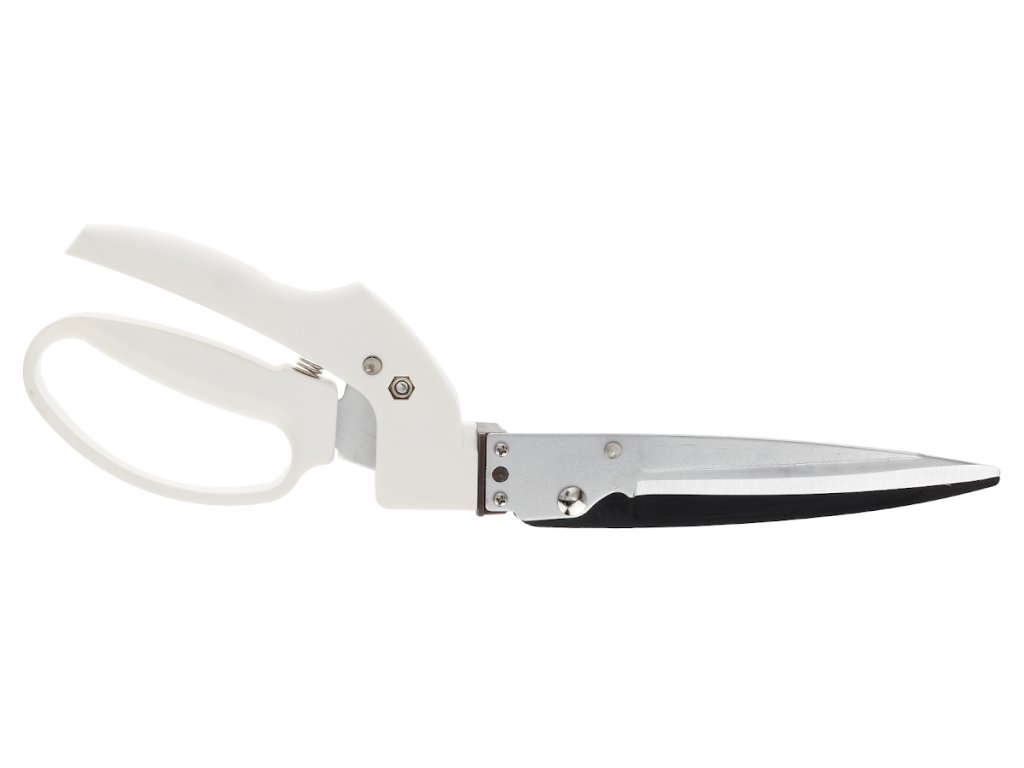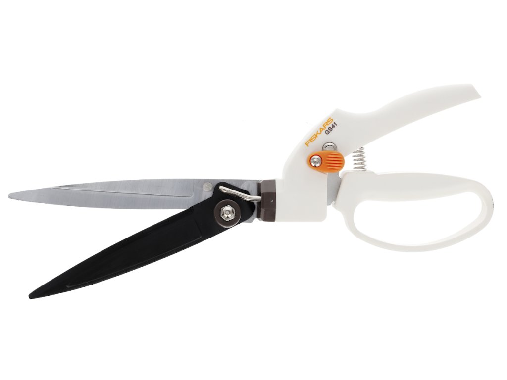 Nożyczki nadają się do przycinania trawy. Posiadają nieprzywierającą powierzchnię górnego ostrza, regulowany kąt cięcia w zakresie 360 stopni. Wygodne uchwyty zapewniają przyjemne i bezpieczne trzymanie dzięki ochraniaczowi palców. Posiada blokadę bezpieczeństwa, dzięki czemu ostrza można bezpiecznie zablokować. Nożyczki wykonane są z lekkiego materiału. Długość: 34,5 cm, waga: 250 g.