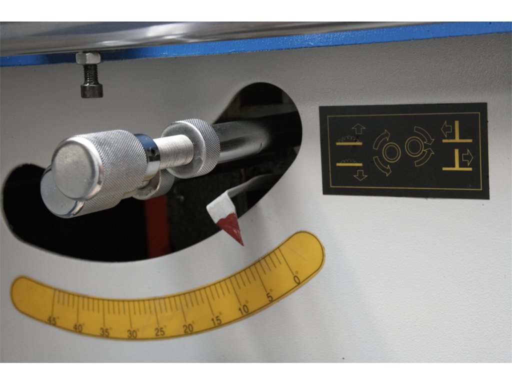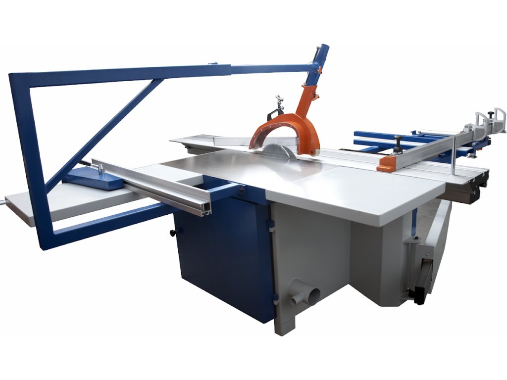 Ta piła formatująca jest przeznaczona do cięcia materiałów na bazie drewna, płyt ABS, PCV i materiałów o podobnych właściwościach. Masywny, ruchomy stół z wysokiej jakości stopu aluminium z lekkim posuwem na prowadnicy kulkowej zapewnia komfort i precyzyjną pracę. Pochylenie tarczy i nacinania wskazuje kątomierz na pulpicie obsługi. Zasilanie 400 V, tarcza główna 300 × 3,2 × 30 mm, obroty 4 000/6 000 obr./min, pobór mocy 4 kW, tarcza nacinająca 120 × 20 mm, obroty 8 000 obr./min, pobór mocy 0,75 kW, gł. cięcia 70 mm przy 90° i 55 mm przy 45°, pochylanie tarczy 0 – 45°, rozmiary stołu 2 500 × 360 mm, maks. długość obrabianego materiału 2 500 mm, maks. szerokość elementu 1 250 mm. Wymiary 2 500 × 3 150 × 900 mm.