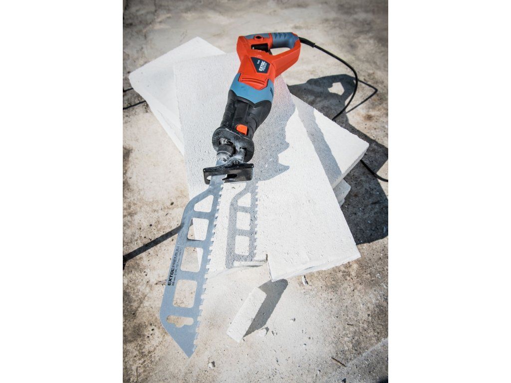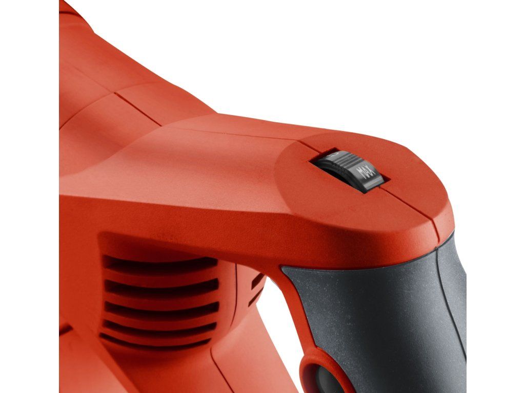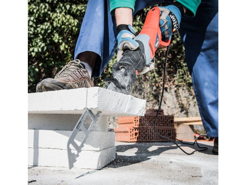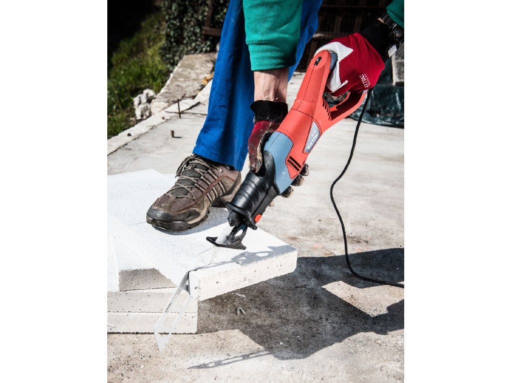 Elektryczna piła nożówka jest z pomocą oparcia przeznaczona do cięcia drewna, tworzyw sztucznych, metali, materiałów budowlanych i innych podobnych materiałów. Elastyczny brzeszczot nożowy umożliwia nie tylko cięcie proste i łukowe, ale również cięcie w trudno dostępnych miejscach. Przy użyciu odpowiednich bimetalowych brzeszczotów można rozpoczynać cięcie do pełnego materiału. Piła ma pogumowaną rękojeść, płynną regulację częstotliwości, stabilizację obrotów pod obciążeniem, możliwość nasadzenia brzeszczotu obróconego o 180°. Maks. głębokość cięcia w drewnie 115 mm, stali 5 mm i metalach miękkich 20 mm, krycie IP20, klasa ochrony II, poziom ciśnienia akustycznego 87 dB(A).