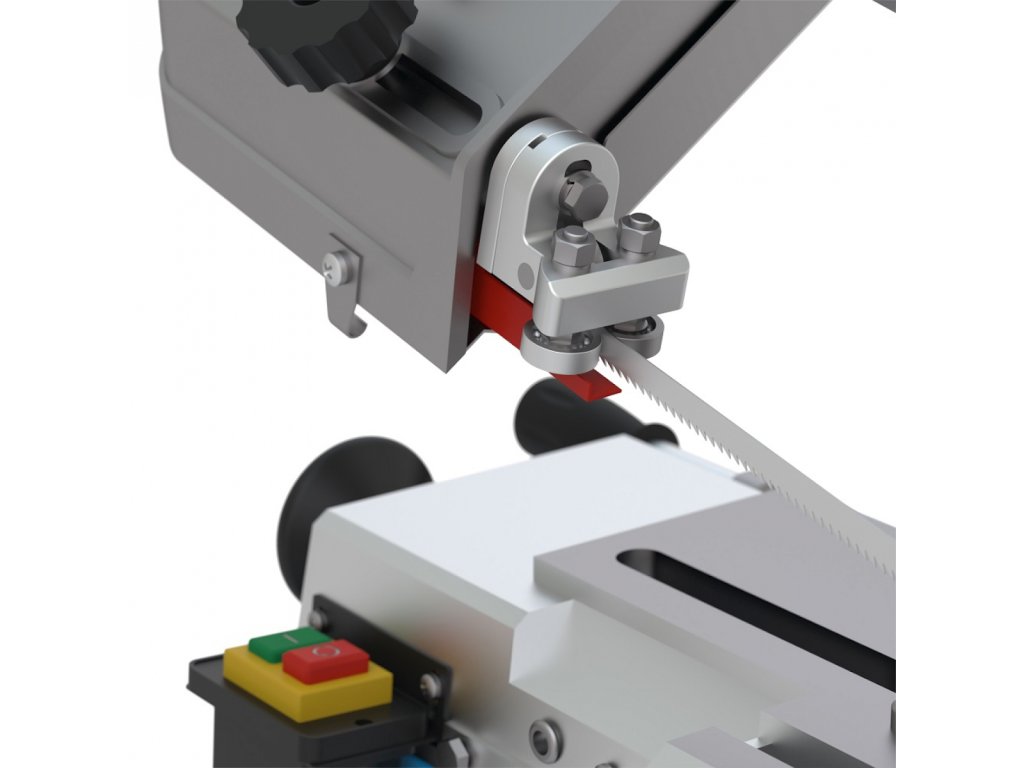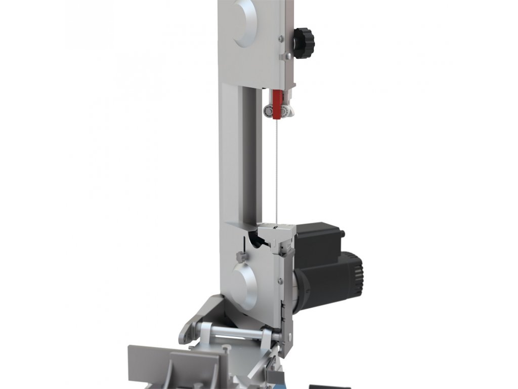 Konstrukcja: solidna rama żeliwna, 3-punktowa prowadnica taśmowa piły (łożyska kulkowe), stabilny cokół z kołami transportowymi (2), uchwyt jezdny.