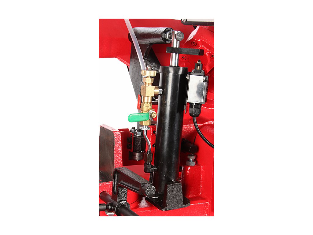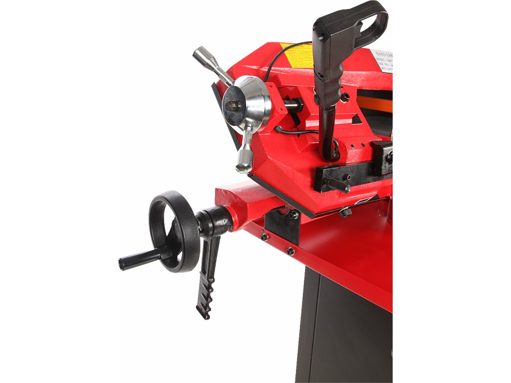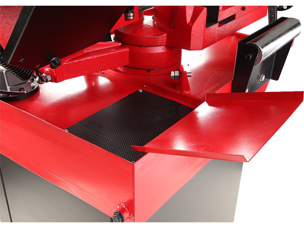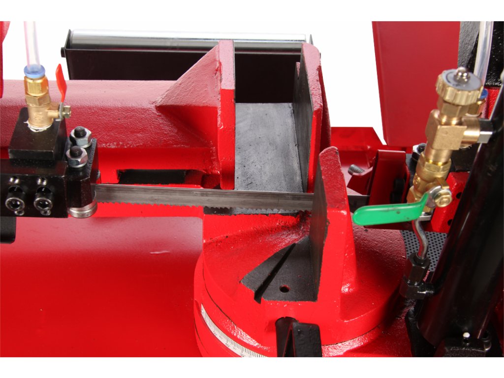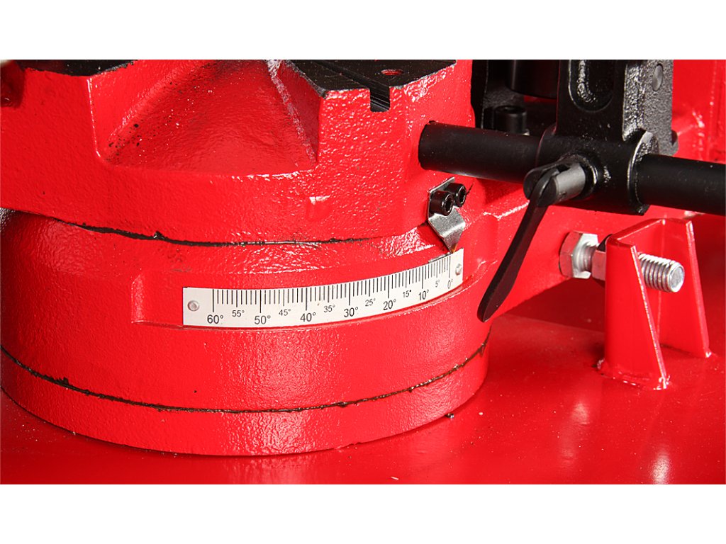 Pilarka taśmowa do cięcia stali, wyposażona w wychylny wysięgnik obrotowy wykonany z żeliwa. Maszyna oferuje komfort przejrzystego panelu kontrolnego, funkcję chłodzenia i wskaźnik naprężenia taśmy tnącej, jest wyposażona w masywne imadło.