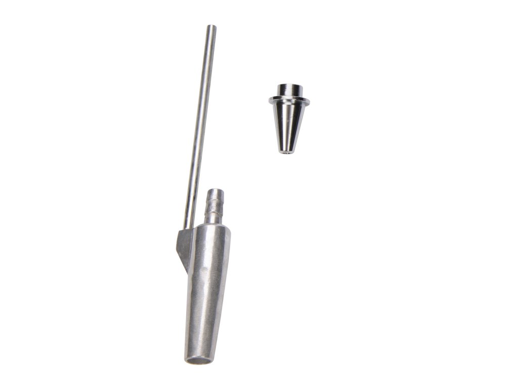 Zestaw idealny do oczyszczania z rdzy, farby, wapiennego osadu czy chemikalii. Ciśnienie robocze 3-6 bar (43-87 psi). Materiał ścierny jest bezpośrednio pobierany z worka bądź wiadra. Zapewnia satynowe wykończenie, gotowe do gruntowania lub malowania. Komplet obejmuje: pistolet do piaskowania, 1,5 m gumowy przewód oraz 1 wymienną dyszę.