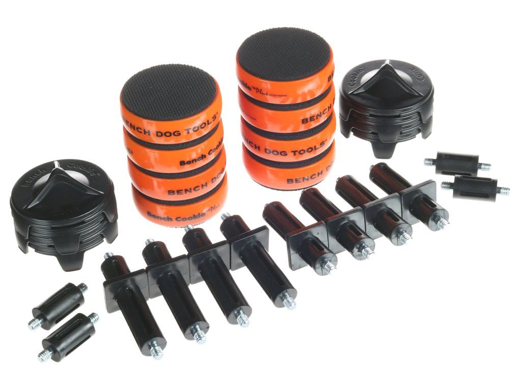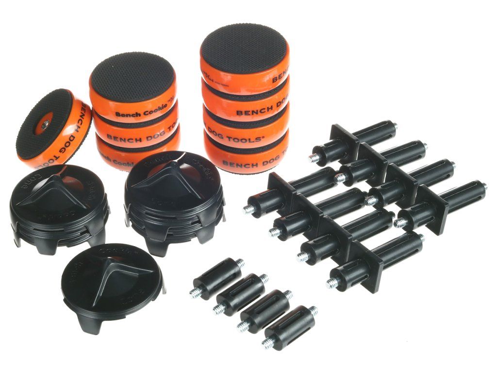8 szt. podkładek przeciwpoślizgowych o miękkiej, gumowej powierzchni, które mocno przytrzymują obrabiany produkt podczas cięcia, szlifowania, frezowania i innych czynności bez potrzeby użycia ścisków.
