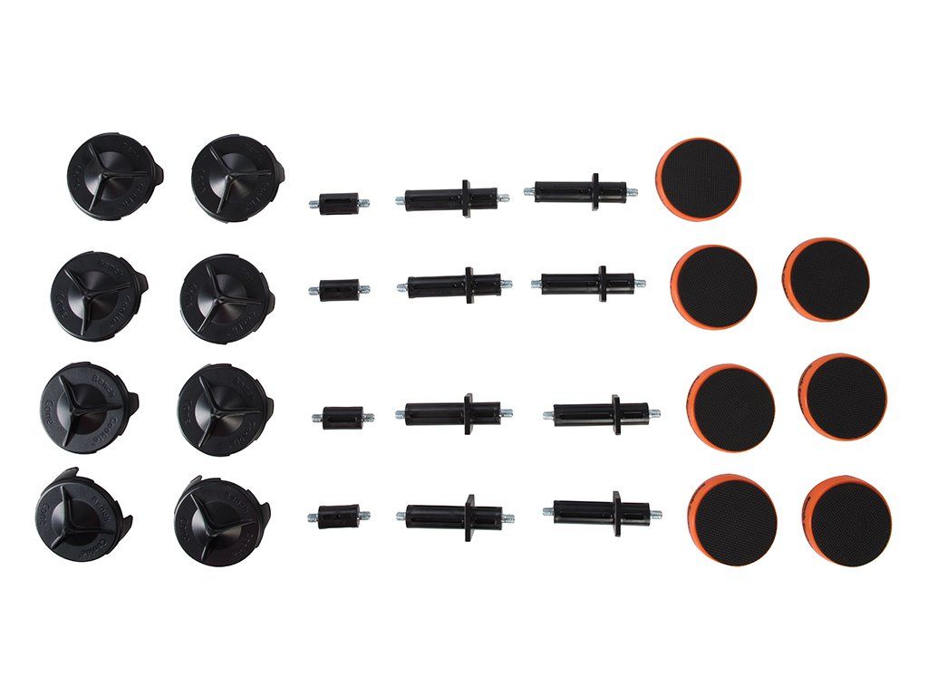 4 szt. nasadek i 8 szt. długich nasadek umożliwiających podniesienie obrabianego przedmiotu i utworzenie przestrzeni roboczej.