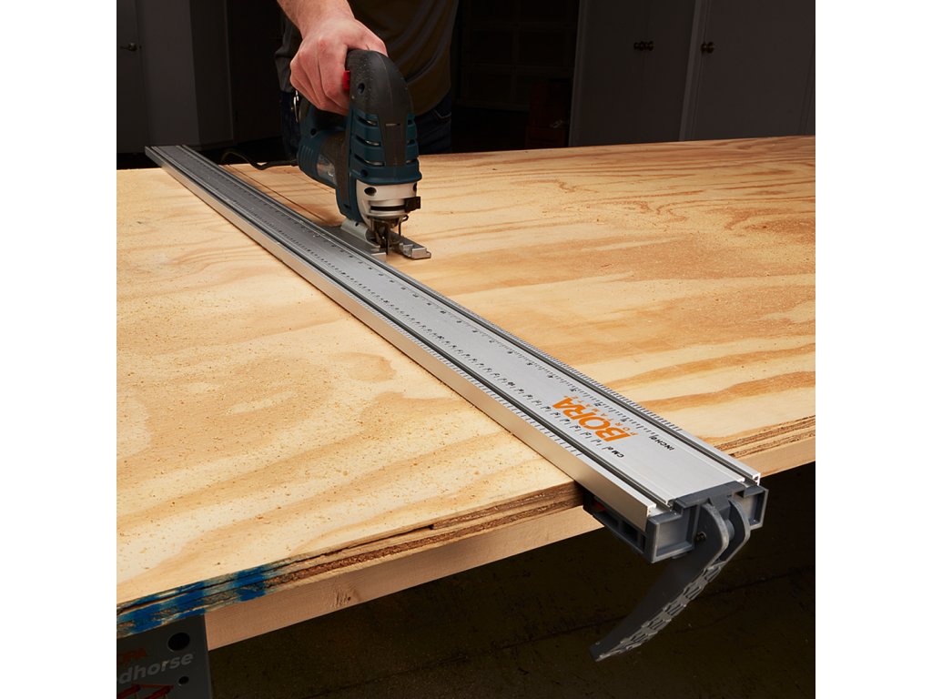 Pożegnaj się z krzywymi cięciami – dzięki prowadnicy marki BORA nie musisz się już martwić o ten problem. Prowadnica ułatwia uzyskanie prostych i precyzyjnych cięć podczas cięcia powierzchni drewnianych lub wąskich materiałów arkuszowych. Po prostu dopasuj koniec zacisku do żądanej długości i zablokuj go na miejscu. Najłatwiejszym sposobem wykonywania prostych i dokładnych cięć jest użycie prowadnicy.