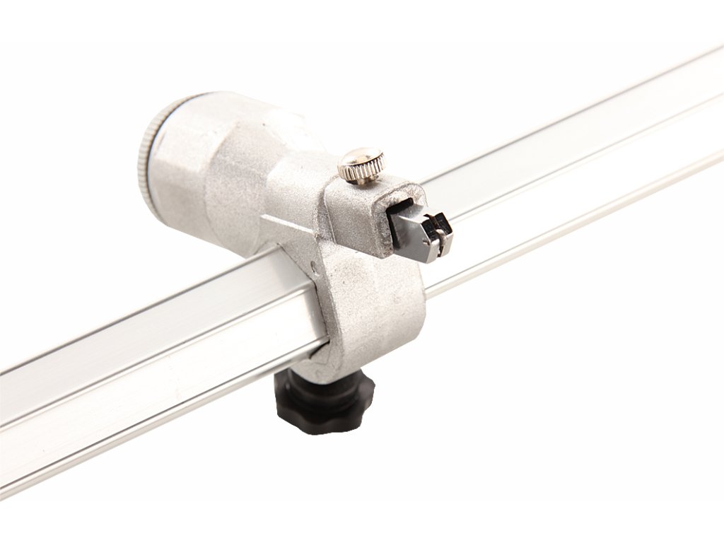 Przykładnica do cięcia szkła o żywotności aż 22 ± 2 km, korpus wykonany z wytrzymałego stopu aluminium, zawiera głowicę narzędzia tnącego ze zintegrowanym smarowaniem.