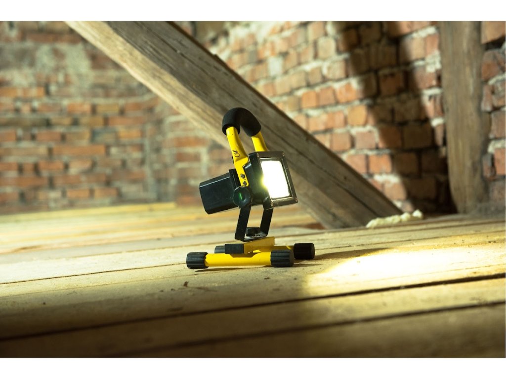 Przenośny reflektor LED do ładowania jest źródłem przyjemnego białego światła, które pasuje do jakości światła dziennego. Diody LED mają niski pobór mocy przy wysokim natężeniu światła. Reflektor może być stosowany jako przenośne źródło światła ze stojakiem bez przewodu zasilającego i bez konieczności podłączania do źródła zasilania el. prąd, bo źródło el. energia to wstępnie naładowany akumulator. Jest wyposażony w specjalny obwód elektryczny "Prąd stały", który dostarcza stały prąd przez około 2 godziny, a tym samym zapewnia maksymalną moc świetlną latarki w tym czasie bez zmniejszania natężenia światła, a następnie latarka jest wyłączana.