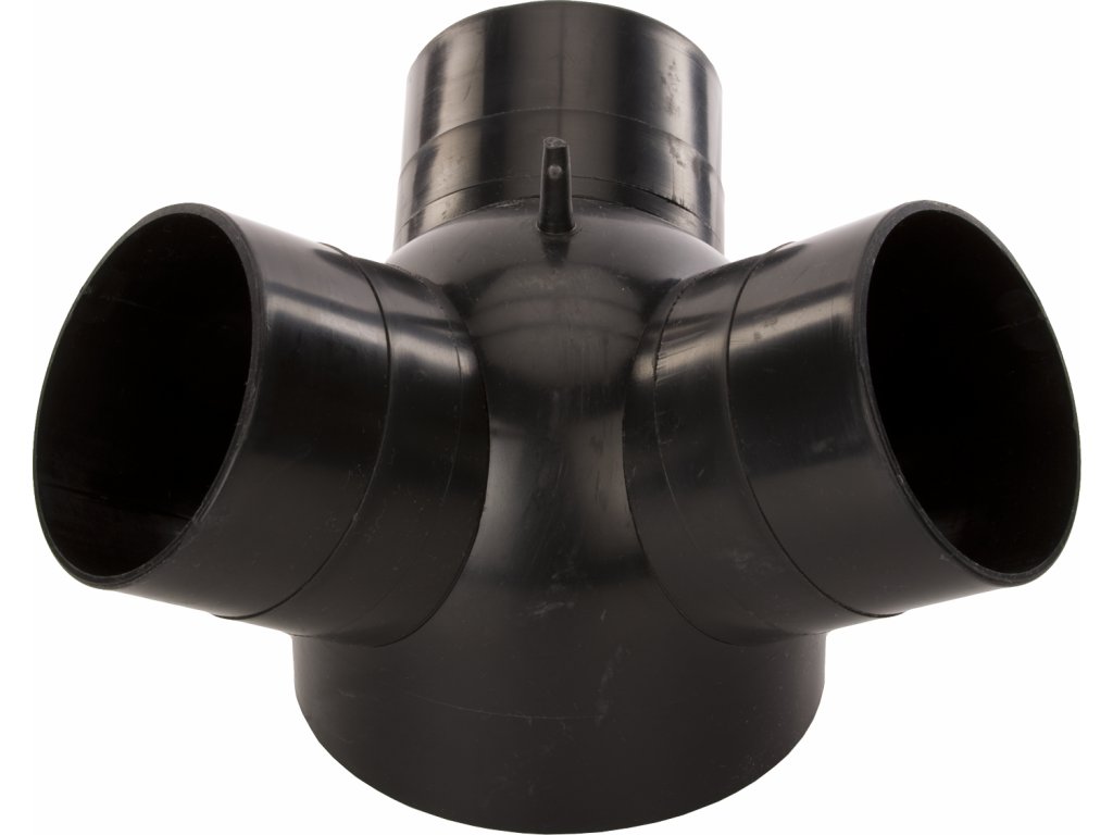 Rozgałęźnik, który może zredukować standardowy otwór ssący wentylatora (150 mm) dla 3 węży Ø 100 mm (2 otwory można zakryć zaślepką). Do pochłaniacza KH-6233.