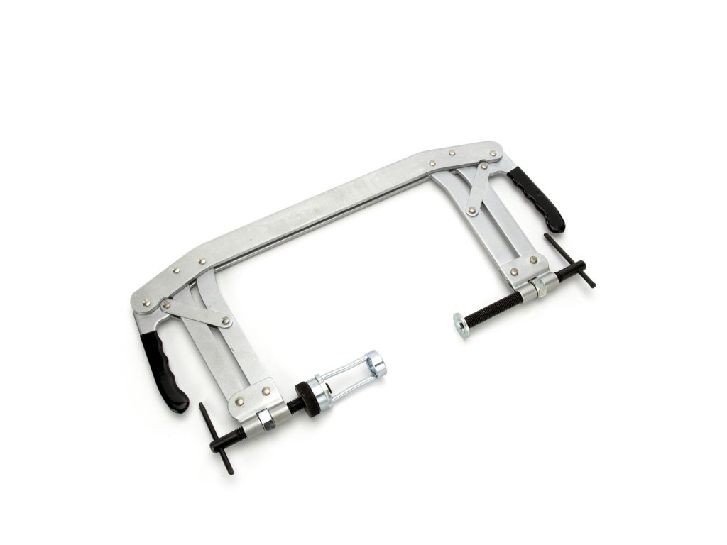 Narzędzie do ściskania sprężyn zaworów benzynowych i naftowych silników samochodów osobowych i lekkich użytkowych z rozrządami OHV/OHC/CVH najpopularniejszych marek, zasięg ścisku 55 – 175 mm, wysięg ramion 165 mm. Wyposażony w śrubę nastawczą i dwie dźwignie ściskające sprężynę.