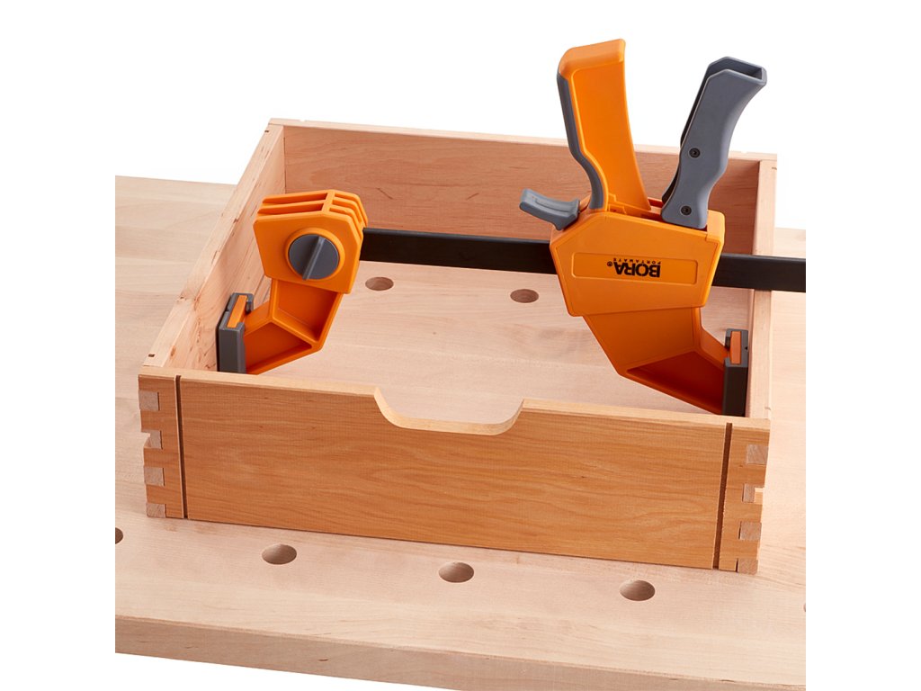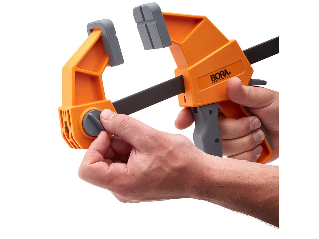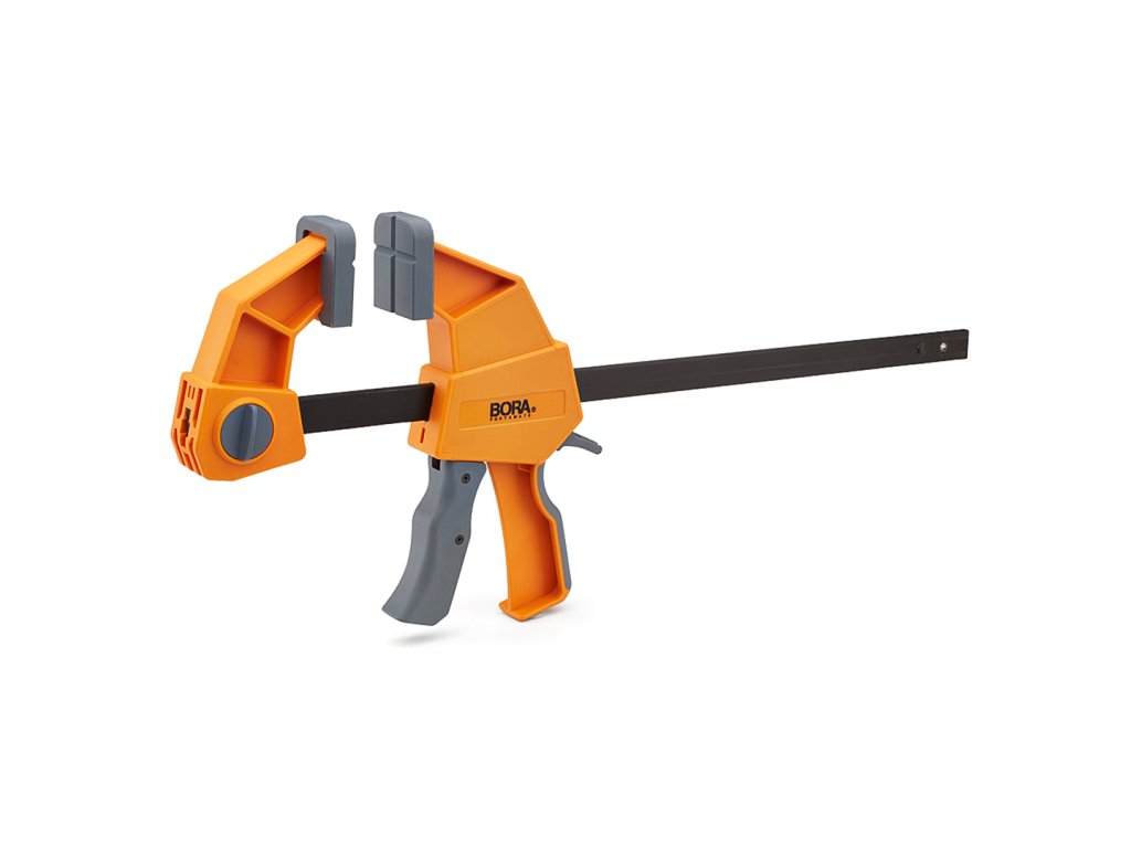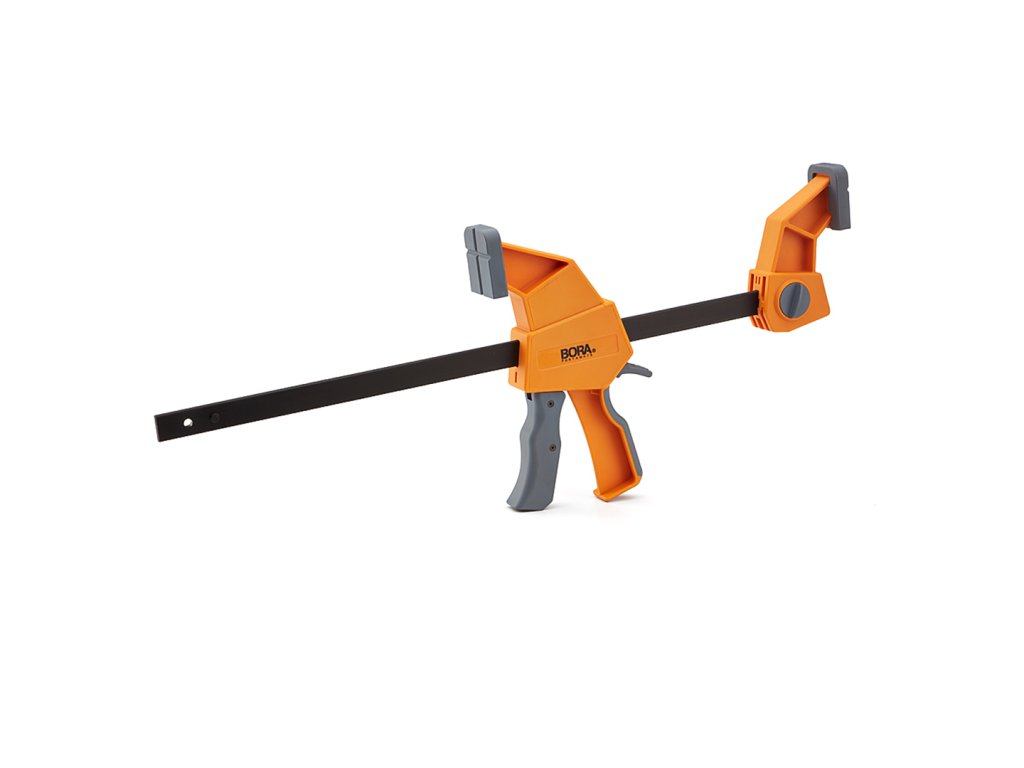 Jednoręczny pistolet stolarski marki BORA może pełnić funkcję zarówno ścisku dociskowego, jak i rozpieracza. Jest intuicyjnie zaprojektowany, aby zapewnić dokładnie taką presję, jakiej potrzebujesz do ukończenia projektów stolarskich lub stolarskich. Praktyczne narzędzie, którego można użyć wszędzie tam, gdzie trzeba coś dokręcić, przytrzymać lub rozłożyć. Prążkowana listwa z tworzywa sztucznego jest bardzo trwała. Miękka rękojeść z termoplastycznej gumy pozwala na łatwą obsługę i chwyt. Maksymalna rozpiętość 61 cm. Siła zwarcia do 200 kg.