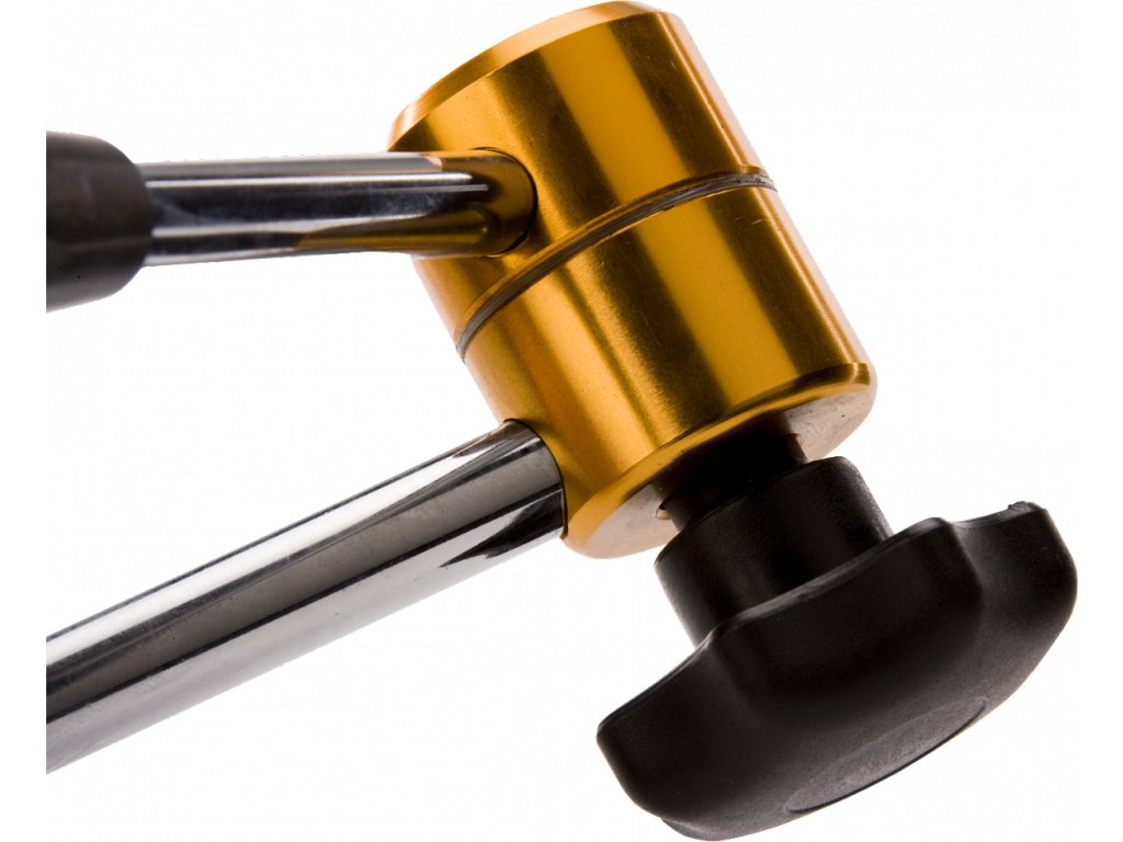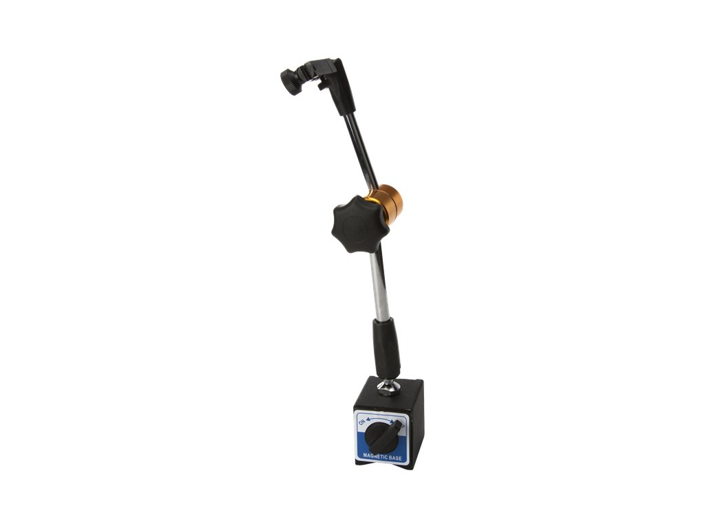 Mechaniczne blokowanie przegubów w jednym punkcie - siła potrzebna do zablokowania przegubów rozprowadzana jest mechanicznie wewnątrz wysięgników - stojaczek można kompletnie zablokować z jednego miejsca. Magnetyczna podstawa 63 × 50 × 55 mm, o sile 588 N, dwa wysięgniki o całkowitej długości 350 mm.