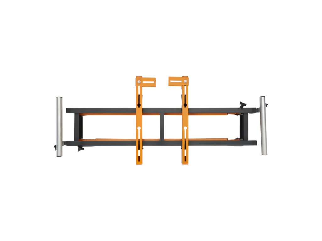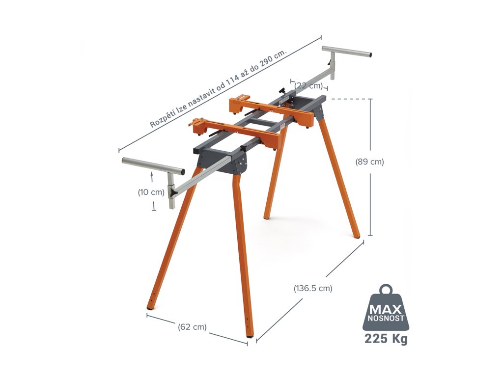 Składany i przenośny stojak marki BORA do pilarek ukośnych i innych nie tylko elektronarzędzi. Mała przestrzeń do pracy lub praca na zewnątrz nigdy nie będą dla Ciebie problemem: możesz po prostu złożyć stojak i ustawić go w dowolnym miejscu - od frontowego ogródka, przez podjazd, aż po garaż. Posiada składane nogi z zatrzaskiem dla łatwego przechowywania i stabilności. Wykonany ze stali rurowej z obróbką antykorozyjną i aluminium, dzięki czemu może wytrzymać nieostrożne obchodzenie się lub częsty transport. Regulowane poprzeczki można po prostu odłamać i założyć z powrotem, co zapewnia błyskawiczną obsługę. Rozpiętość stojaka można regulować w zakresie od 114 do 290 cm. Wysokość robocza 90 cm.