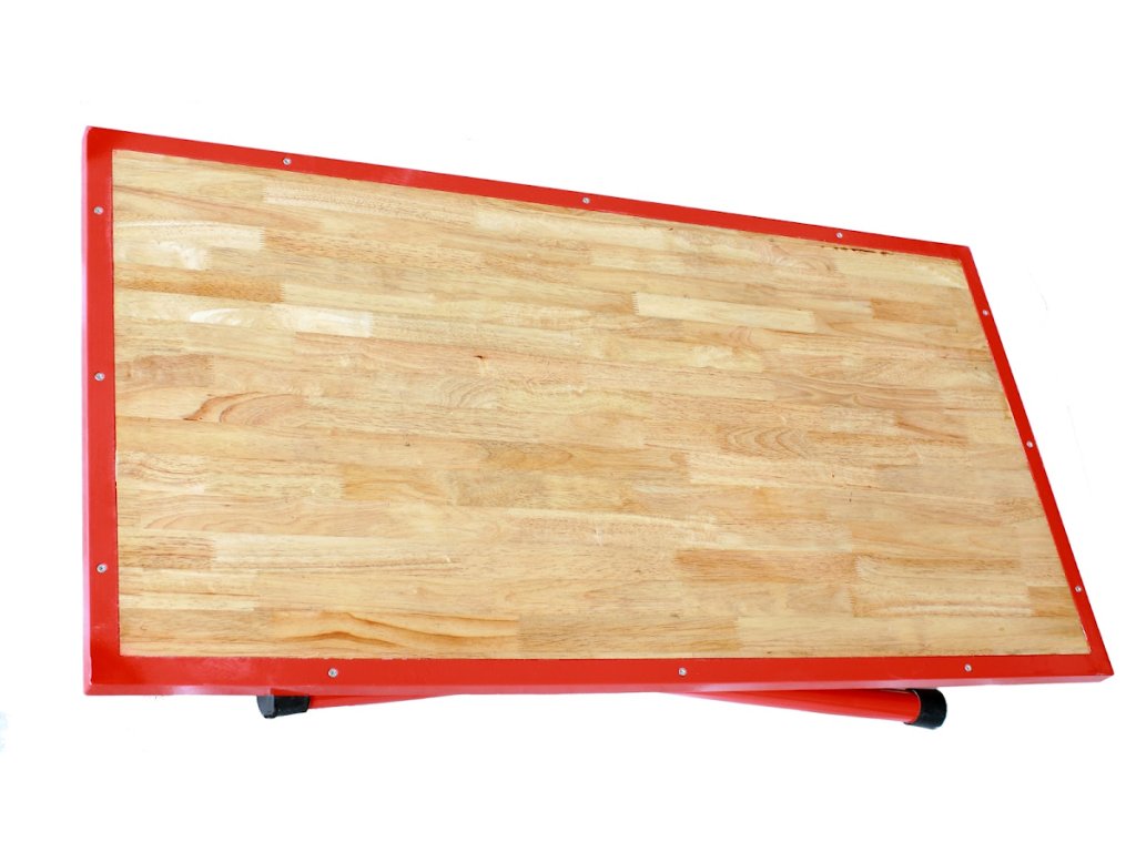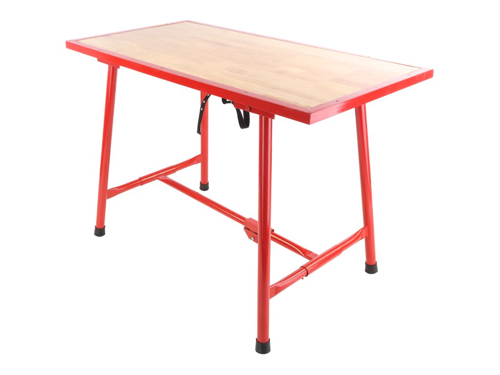 Stół posiada konstrukcję rurową ze składanymi nogami, co umożliwia łatwe złożenie oraz oszczędność miejsca podczas przechowywania lub transportu. Blat roboczy ze sklejki zapewnia wystarczająco solidną i trwałą powierzchnię roboczą do szerokiego zakresu zastosowań.