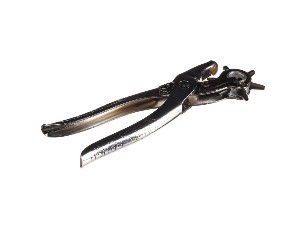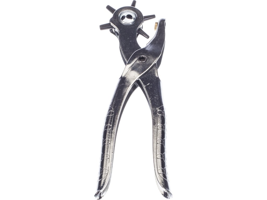 Do wybijania otworów w skórze, kartonie, materiale tekstylnym i tworzywach sztucznych. Długość całkowita 220 mm, średnice wybijaków 2; 2,5; 3; 3,5; 4 i 4,5 mm; chromowany korpus, hartowane wybijaki, stal 40Cr.