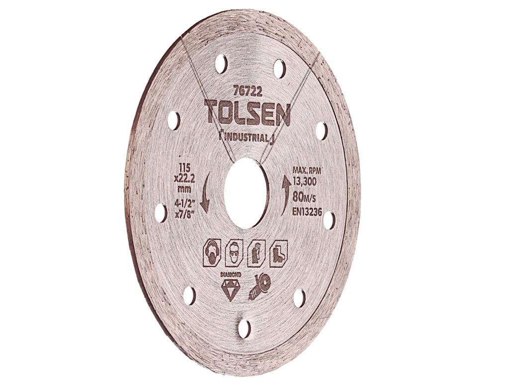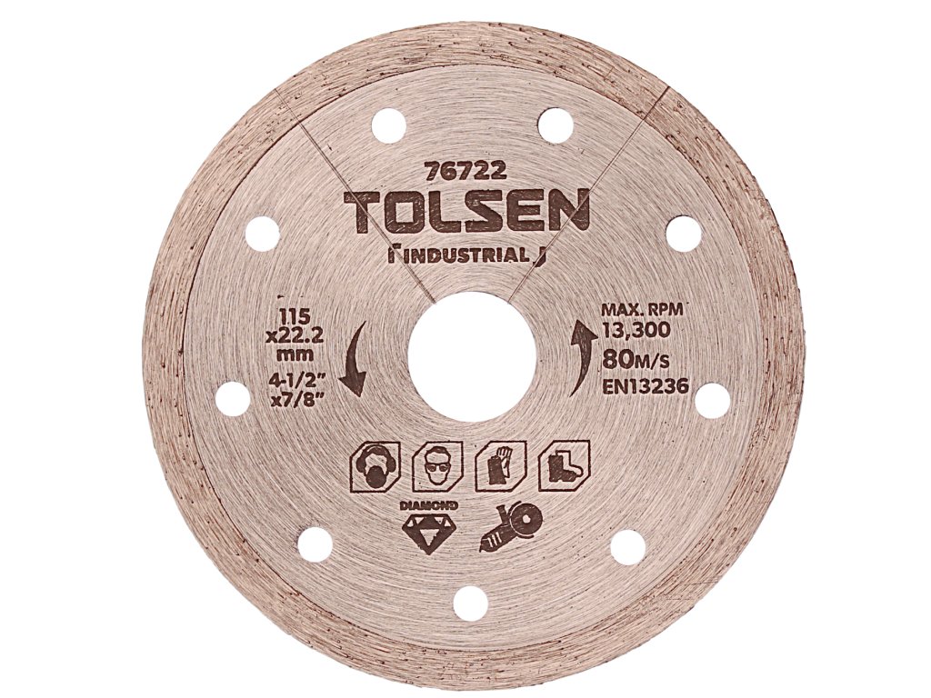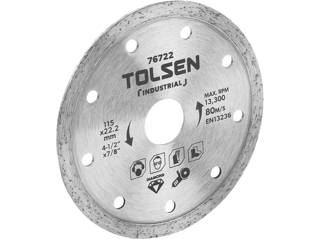 Jakościowa diamentowa tarcza przeznaczona jest do suchego cięcia murów, cegieł, pokrycia dachowego i innych materiałów budowlanych. Wysokość segmentu 7,5 mm. Maks. obroty 13 300 ot/min.