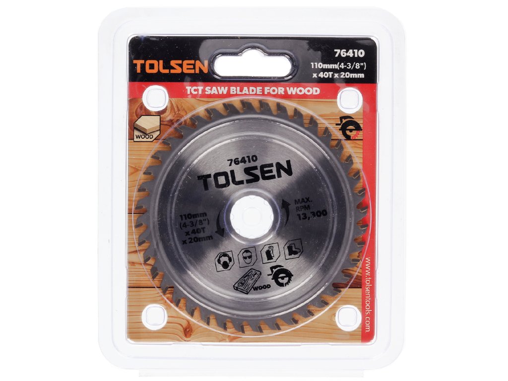 Tarcza piłowa pokryta płytkami TCT (spiekany węglik wolframu). Średnica tarczy 110 mm, wielkość otworu ø20 mm, ilość zębów 40, redukcja ø16xø20 mm. Grubość tarczy (blacha) 1,1 mm. Maksymalne obroty 12500 n / mm.