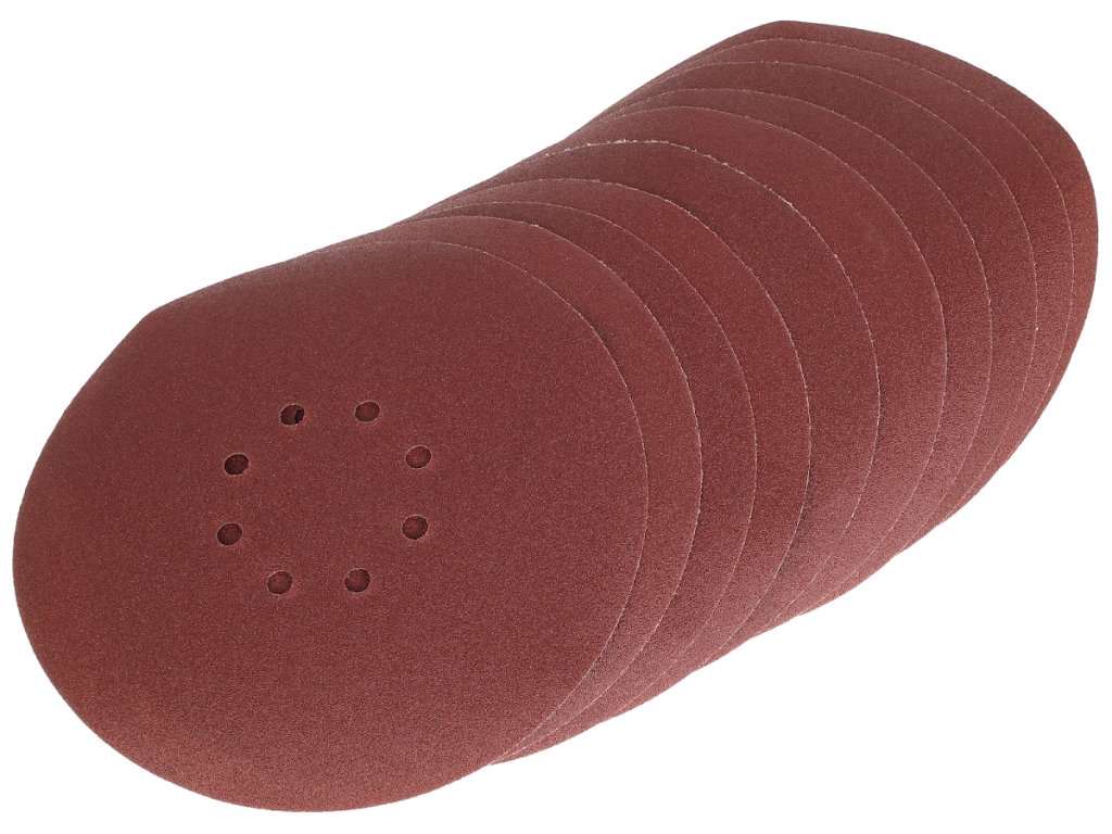 Papierowy krążek ścierny z zapięciem na rzep, ziarnistość P100, średnica 225 mm, 8 otworów, opakowanie zawiera 10 szt.