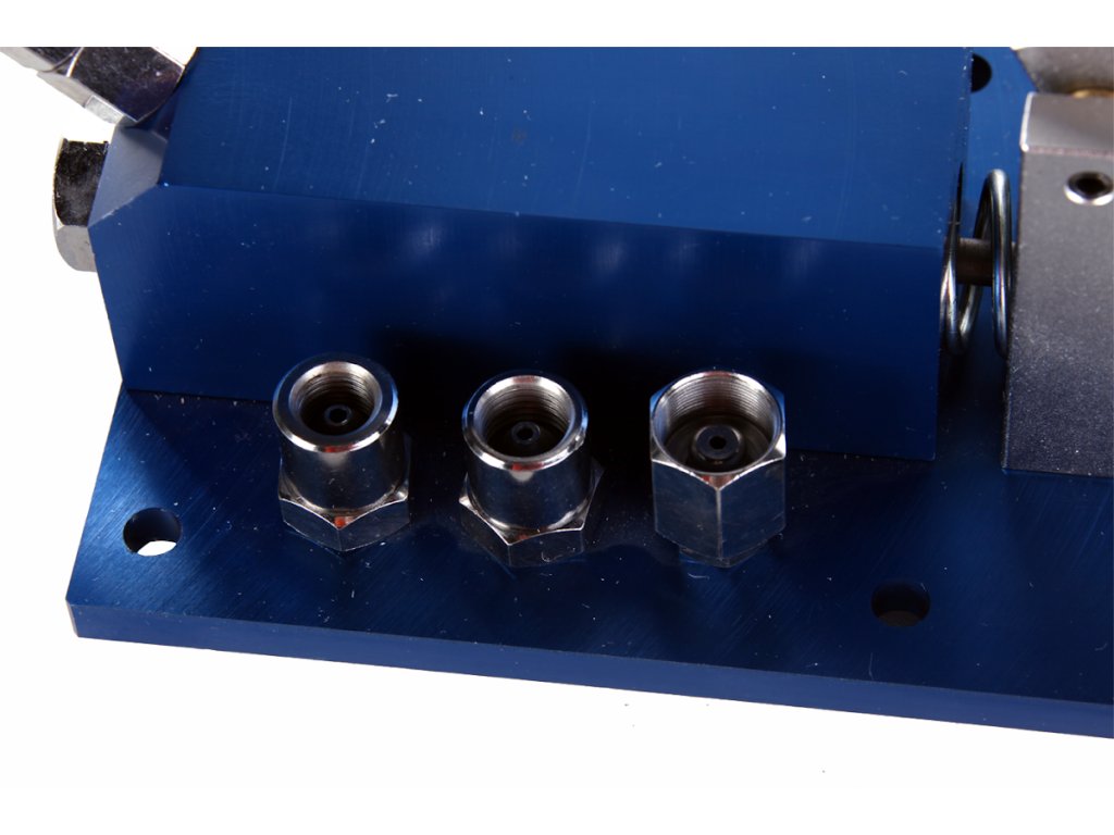 Stołowe urządzenie do kontroli szczelności wtrysków paliwa silnika samochodowego. Wersja aluminiowa z plastikowym zbiorniczkiem na zasoby i odzysk płynu kontrolnego. Próbnik jest wyposażony w ręczną pompkę ciśnieniową i ciśnieniomierz z ochronną obudową gumową. Ciśnieniowa instalacja rurowa z gwintem M12 × 1,5 z adapterem M14 × 1,5; M12 × 1,25 i M17 × 0,75. Ciśnienie robocze 0 – 400 bar (0 – 5 800 psi).