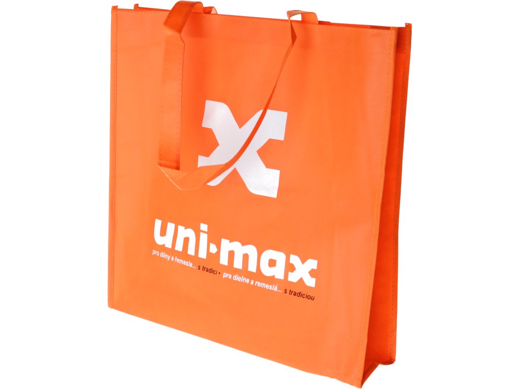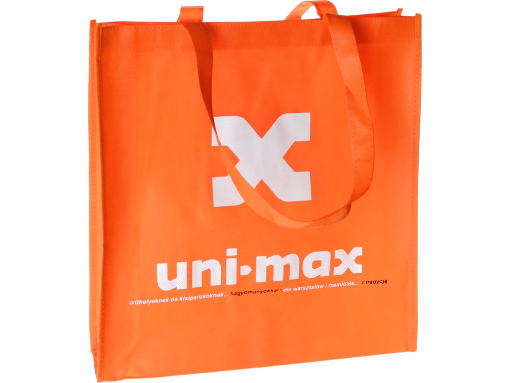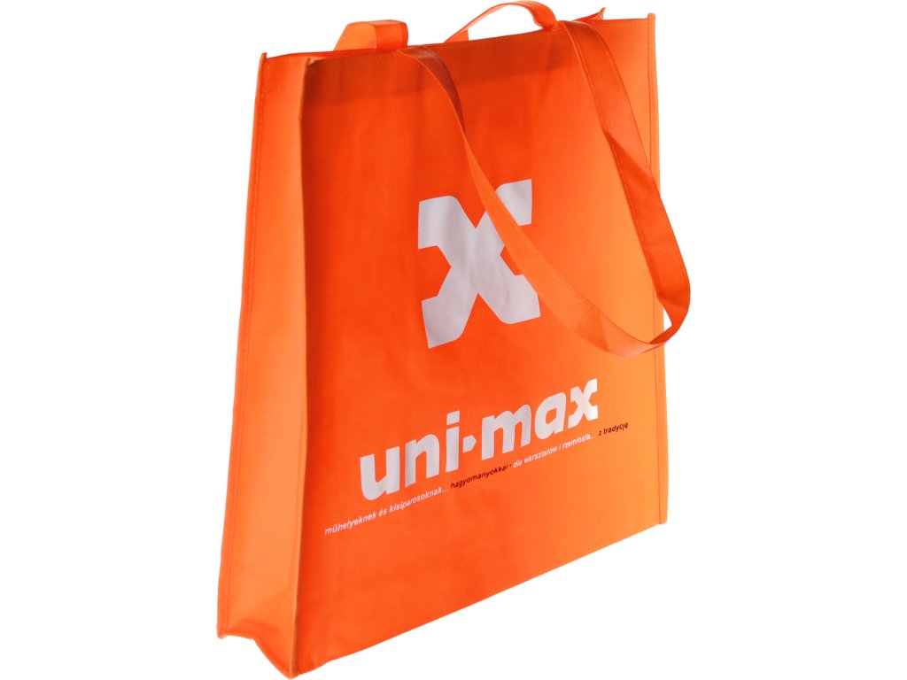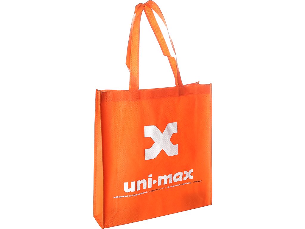 Mocna torba z logiem jest wykonana z nietkanej tekstylii czarnego koloru, wymiary 400 × 370 × 100 mm, nadaje się też do noszenia na ramieniu.